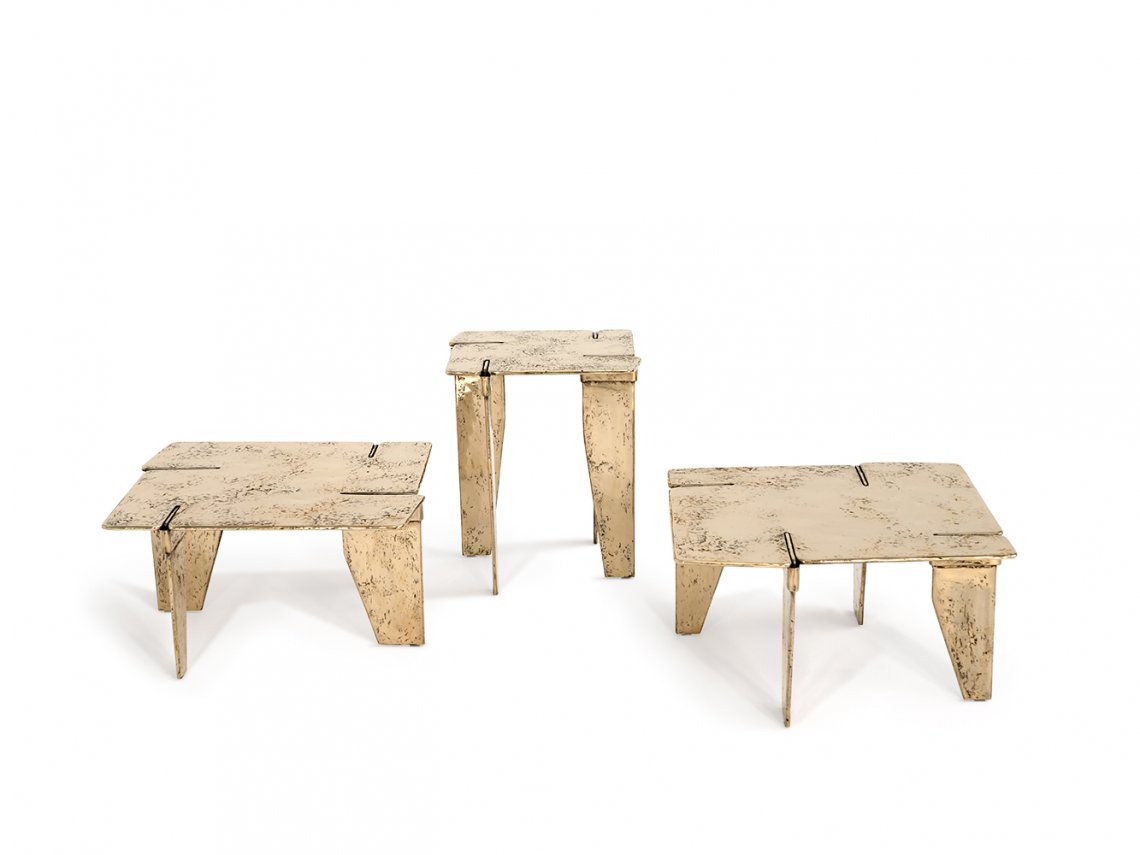 The metal version of the coffee table Overlap is realized by casting bronze into special molds made of sand. The sculptural look of the surface and the use of bronze metal as raw material makes this item a contemporary artwork.