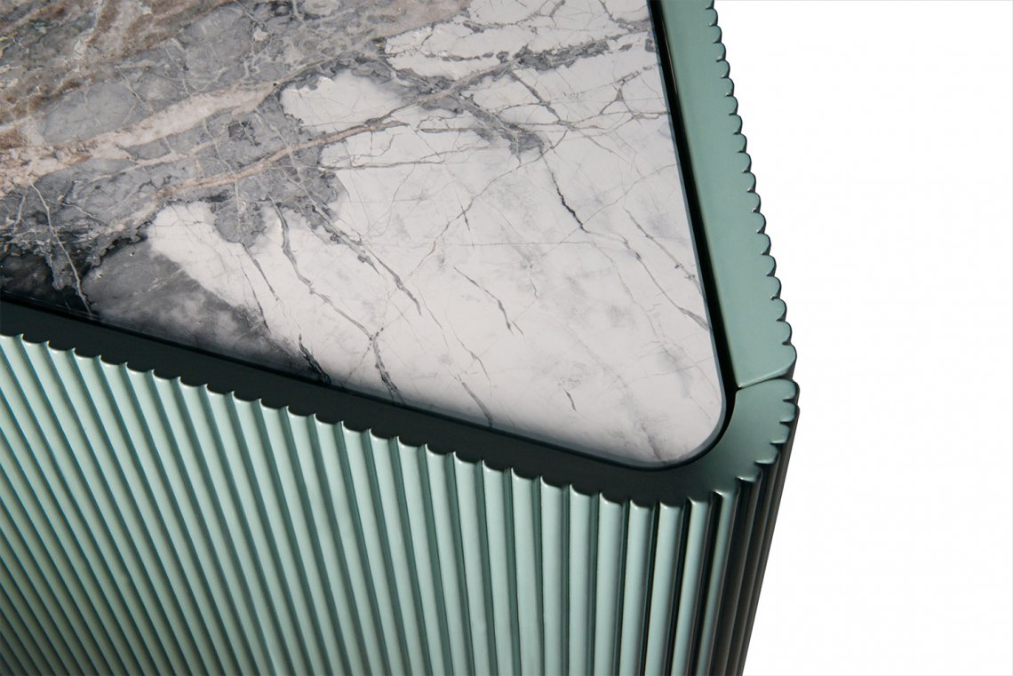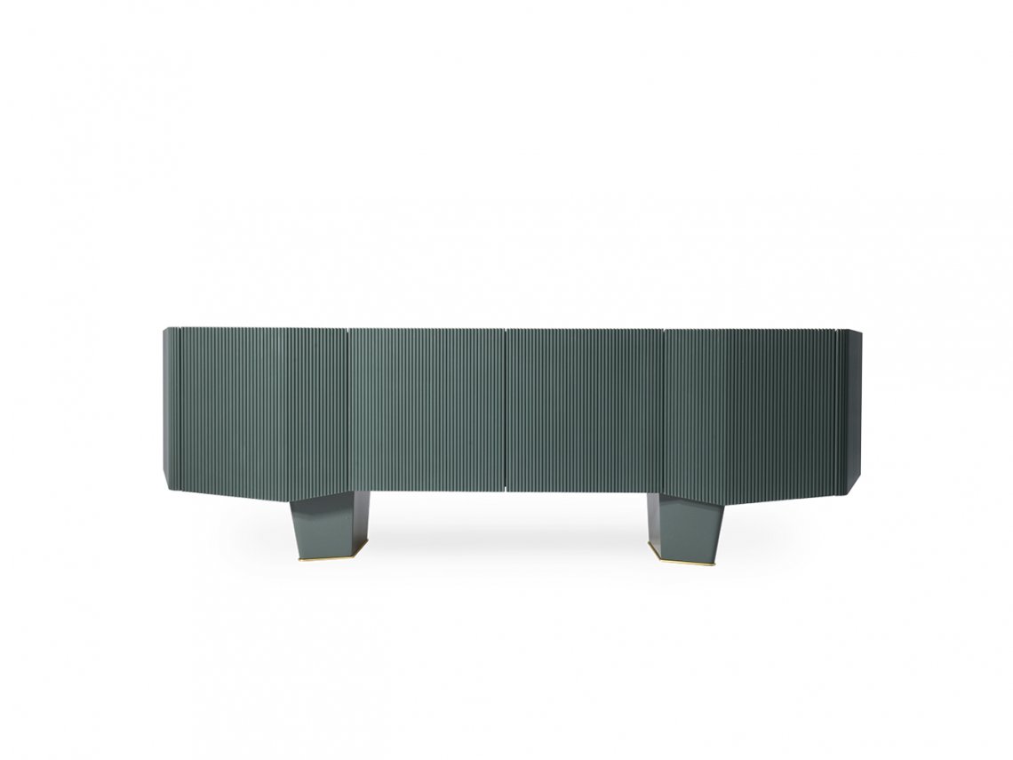 Diamond is a storage unit with contemporary lines particularly suitable for an eclectic living area. The double ”L” shaped bases supports a storage unit with doors finely ribbed. All available finishes have been selected from a range of natural colours that can be easily combined with other pieces. It is available with 3 or 4 doors, each end door opening outwards. A modern and exclusive look, in which art and design coexist in perfect harmony, is reached thanks to the linear design skills that distinguishes it.