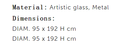 Planetarium chandelier is characterized by a vertical pipe that ramifies towards the floor into different metal branches with adjustable inclination that support glass-blown spheres realized by glass-masters of Venice area. These spheres, which the light spreads through, have different dimensions and are realized following different tecniques like “Balloton” with three-dimensional crossed pattern or “pulegoso” that presents small bubbles inside of the glass. This chandelier is suitable to be hung on a wall and it’s recommended for a reading room.