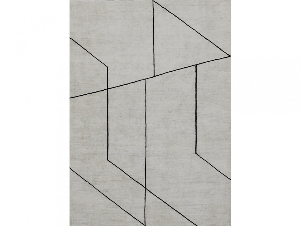 Rug realized with ”handloom” manufacturing tachnique. The main field is made of ”taupe” loop linen, the rug pile is made of viscose, while the stipe motif is made of black viscose.