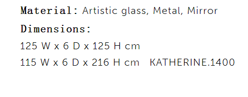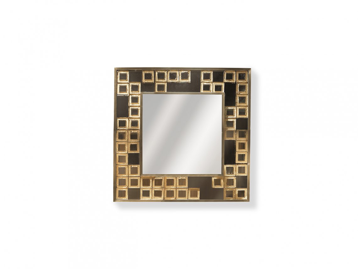 Mirror Katherine has a geometrical shape with many details: its frame is decorated with handmade precious glass elements realized one by one by master glassmakers in Venice area. The alternation of glass details applied onto the frame suggests a refined geometrical look and the sophisticated golden shade behind each square element exalts the beauty of the casted-in plates glass. This precious and sophisticated mirror suits to different styles and environments.