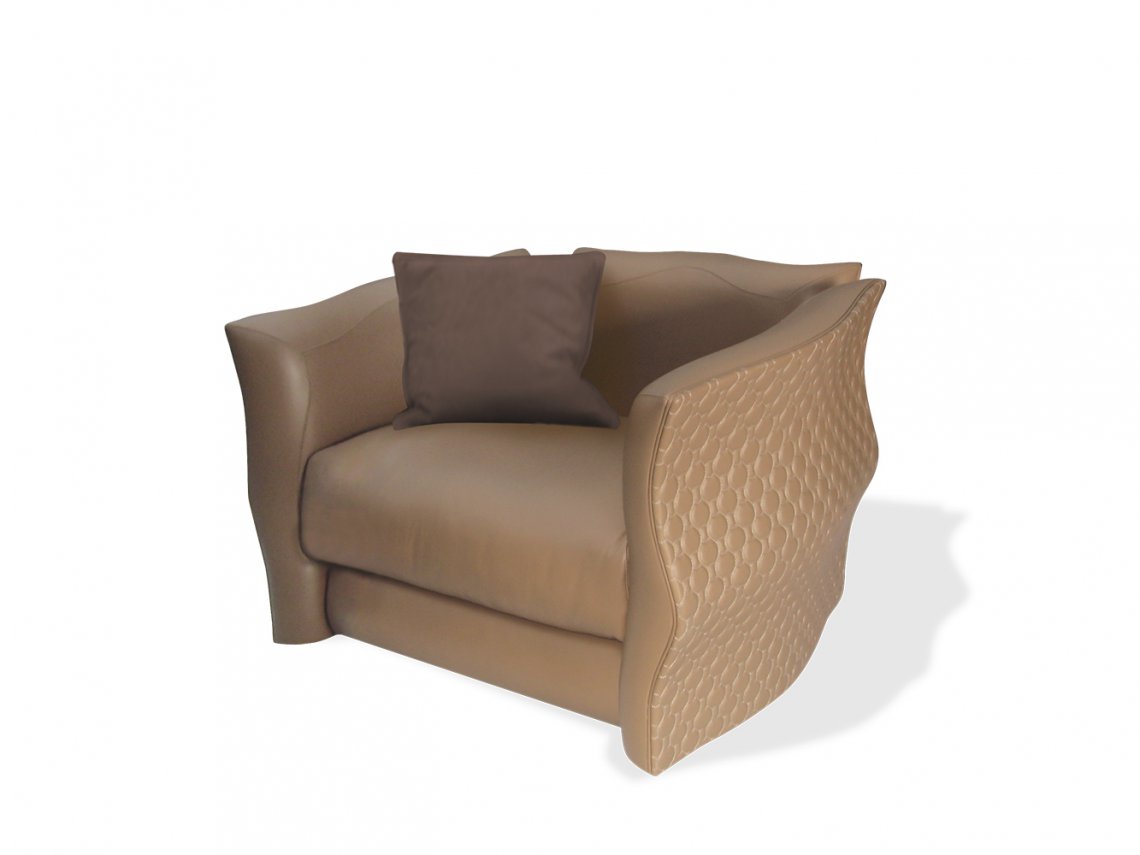 Armchair Scarlett can be considered a unique element thanks to its three-dimensional sides and to its embroidered pattern on the external back and arms that enhance its preciousness. This refined embroidery, available only on the items of this collection, and its enveloping shape make it suitable for elegant environments with different styles. It can be upholstered with leather or fabric.
