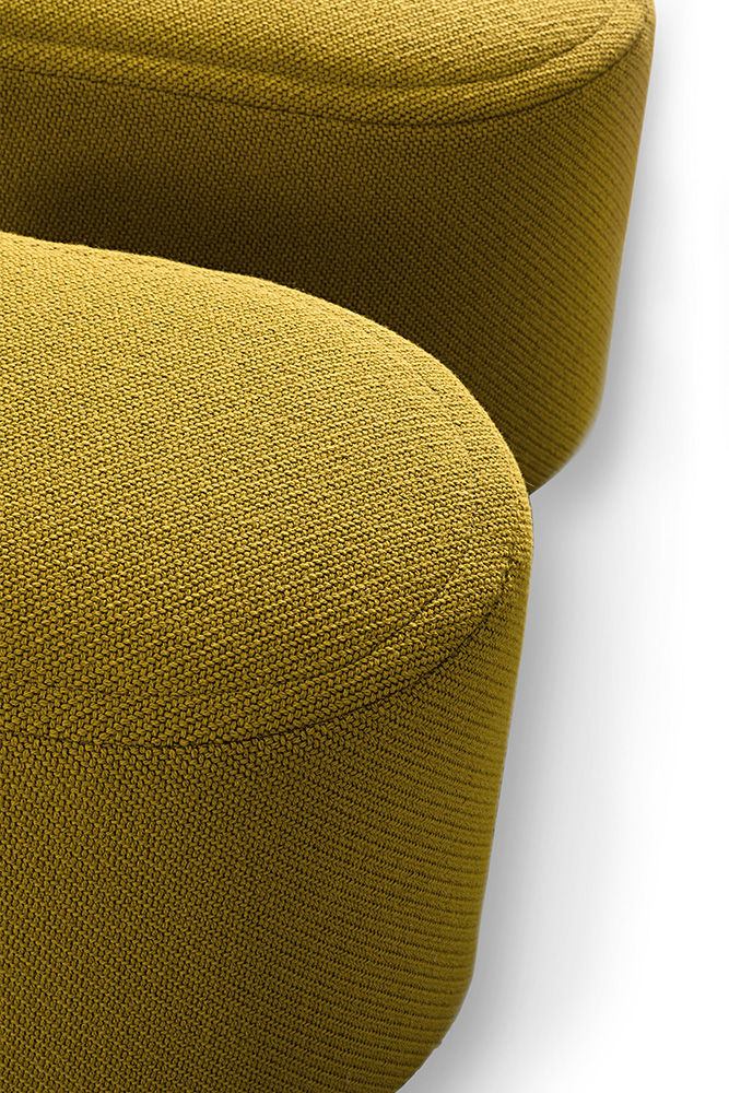Characterized by a rounded shape on one side and a cubic shape on the opposite side, the pouf Marilyn has small dimensions perfect for any style of living room. Its covering has a border marked by a double stitching that can be seen and felt when touching, aesthetic expression of the designer’s stylistic choice. The use of brightly colored fabrics fully enhance the pouf and make it more contemporary. It is also available in leather.