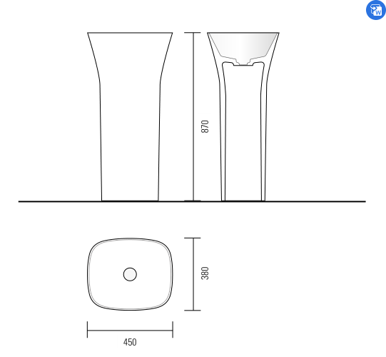 Lavabo sur colonne en Monolith sans trop-plein et avec la bonde