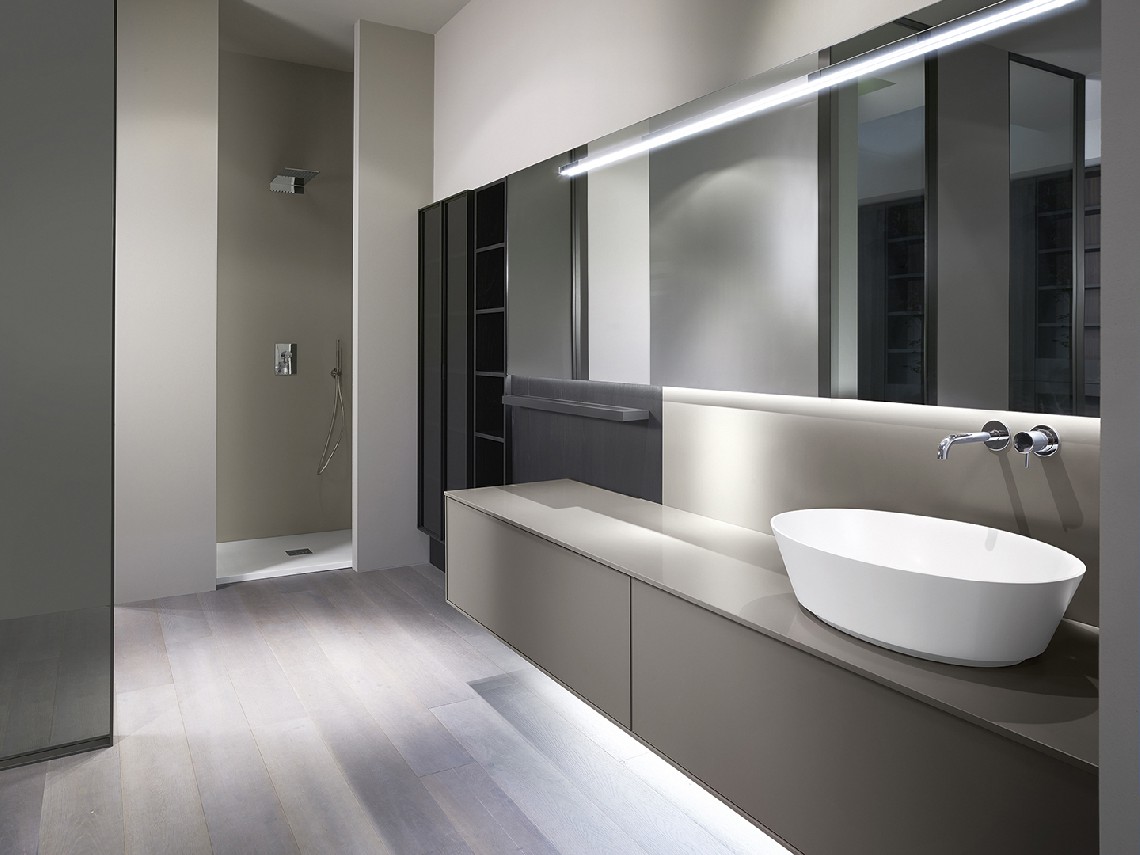 Lavabi da appoggio in Monolith, senza troppo pieno, con tappo piletta in Monolith.