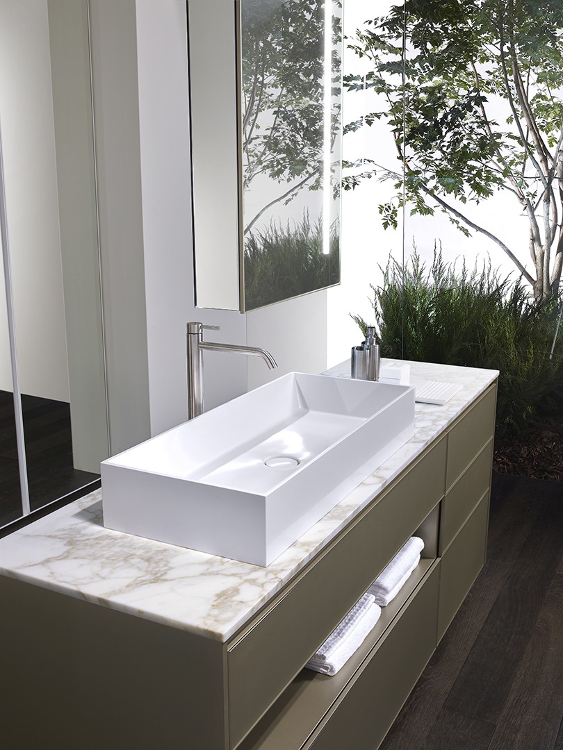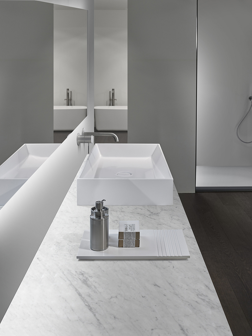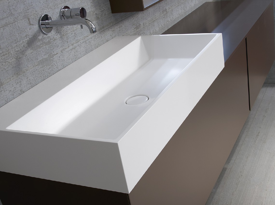 Top washbasins in Monolith, with no overflow, for Monolith drain plug.