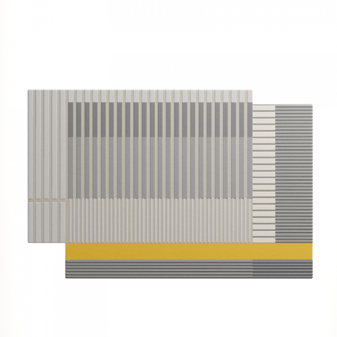 An asymmetrical rug, handcrafted using manual Tufting method, made of wool and viscose.