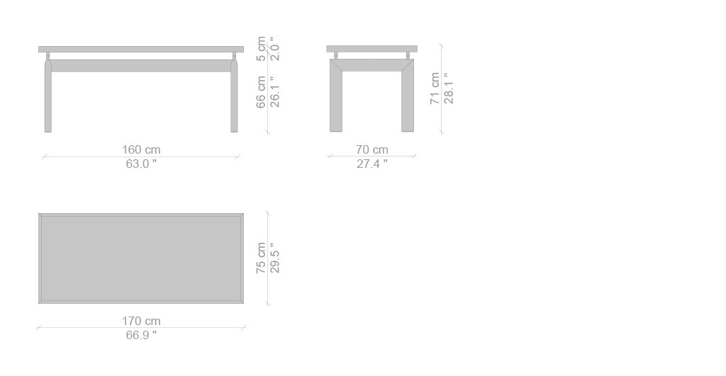 L’idea di base del tavolo LC6, presentato nel 1929 al Salon D’Automne, risiede nella distinzione tra l’elemento portante e l’elemento portato, ovvero tra il basamento e il piano. L’autonomia delle due parti è evidenziata da quattro sostegni intermedi che fungono sia da regolatori di livello che da distanziatori tra la consistenza del supporto e le linee esili del piano. In particolare, il basamento fu disegnato nel 1928 facendo riferimento i profili ovoidali impiegati nel settore aereonautico per separare le ali dei biplani. Il modello attuale presenta il basamento in acciaio verniciato nei colori della palette di Le Corbusier, con piano disponibile in cristallo, vetro stampato, legno, o nelle pregiate finiture in marmo bianco Carrara e marmo nero Marqui?a.