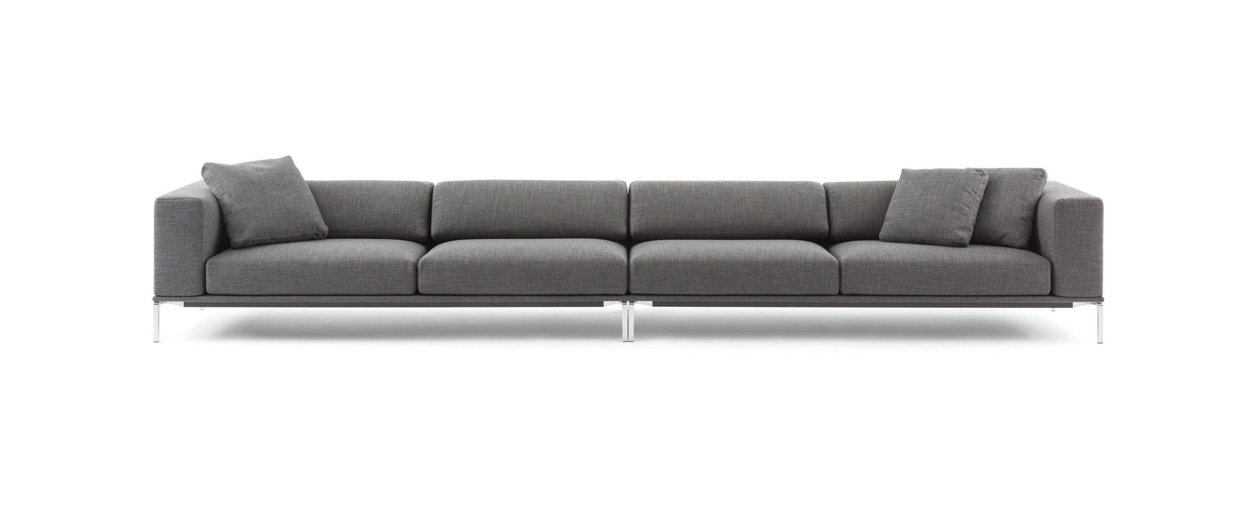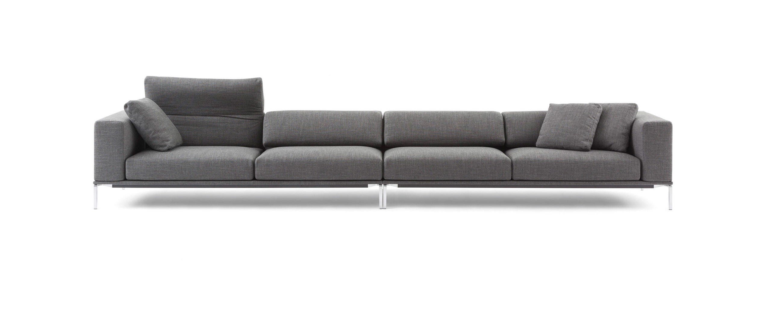Un divano sospeso dal design essenziale e visivamente leggero, ideale in ogni ambiente e contesto d’uso. Un sistema componibile di grande fruibilità e trasversalità, sia nella forma che nel posizionamento accessibile. Con la sua seduta soffice e confortevole, integrata con schienale poggiatesta ribaltabile, Moov è un autentico invito a lasciarsi accogliere e coccolare. La struttura di supporto è caratterizzata da una linea di metallo che corre lungo l’intera profondità degli elementi per evidenziare la compattezza delle superfici esterne. La multifunzionalità del sistema alterna un abaco di isole accostabili ad una serie di divani fissi in tre lunghezze e in diverse composizioni. Il suo spirito ecclettico e contemporaneo è ulteriormente sottolineato dalla disponibilità di una doppia profondità - di 85 o 110 centimetri - che consente di inserire il divano anche in spazi ridotti.