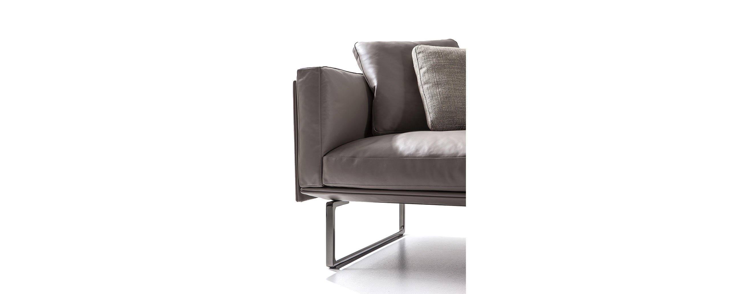 Comfort ed eleganza senza tempo distinguono le proporzioni minimali e versatili di Otto, definito da una struttura modulare che unisce maestria costruttiva e cura sartoriale in ogni aspetto del prodotto. La sua base in estruso di alluminio consente di creare e comporre elementi di varia lunghezza che valorizzano la linearità e la purezza del design aprendosi ad un’ampia scelta di configurazioni. L’inserimento del rivestimento nella fessura centrale dei pannelli flessibili, eseguito a mano con precisione millimetrica, esprime la sapienza artigianale di Cassina, mentre gli inserti di piuma nella seduta, nello schienale e nei braccioli amplificano la sensazione di leggerezza e morbidezza delle forme. Il divano è rifinito con lavorazioni estremamente minuziose ed è disponibile anche nella versione con inserti in ovatta di poliestere.