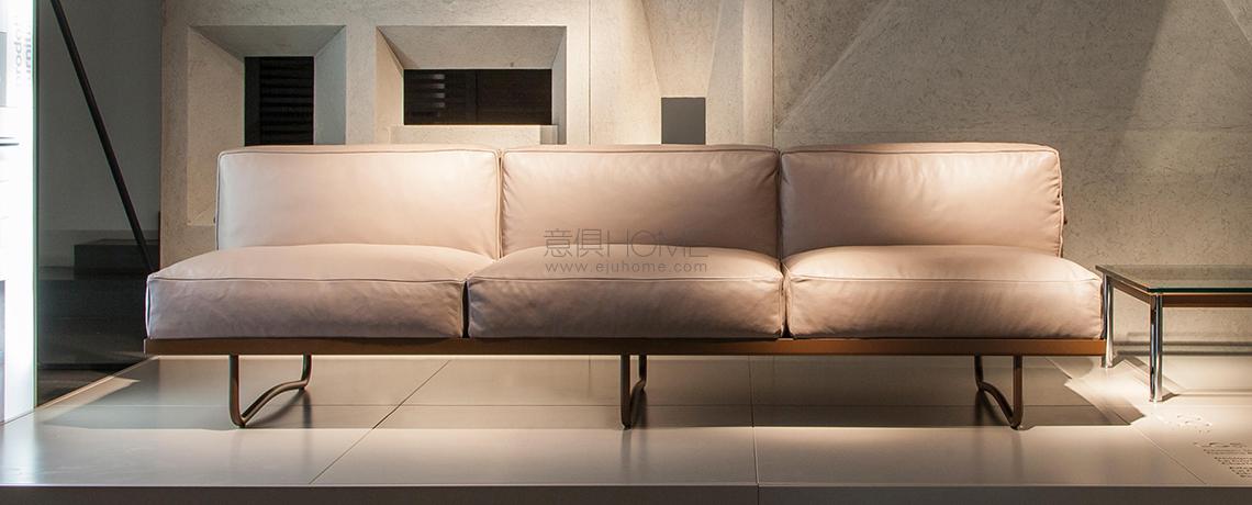 Linee contemporanee e confortevoli per il divano disegnato da Le Corbusier per la sua casa di Parigi, dove ancora oggi si conserva il modello autentico che ha ispirato il lungo processo di riedizioni compiuto dall’azienda nel pieno rispetto del pensiero degli autori. Cassina effettua una prima rivisitazione dell’originale nel 1974, offrendolo in un’unica dimensione con finitura cromata che sarà poi rinnovata nelle finiture che nelle misure più ampie. La struttura comoda ed elegante è dominata da cuscini in piuma a formare lo schienale e la seduta, sostenuti da una base metallica di grande riconoscibilità declinata nei sette colori della collezione. L’attuale edizione con due o tre posti è disponibile con rivestimento in pelle o tessuto.