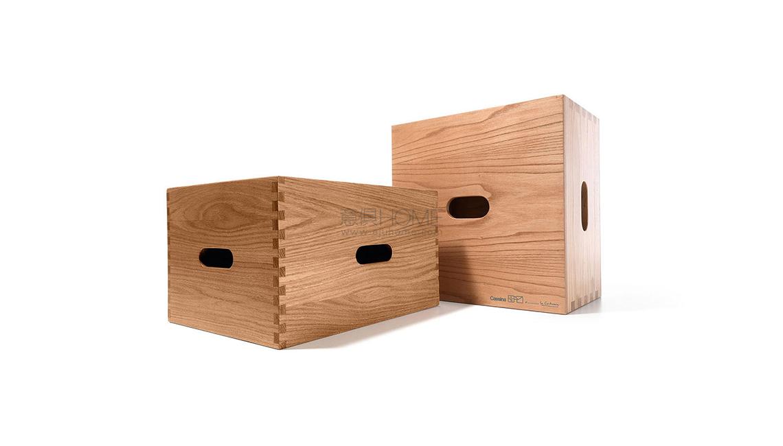 Esclusivo il sistema di incastro a coda di rondine sugli spigoli, che valorizza la precisione e l’abilità di Cassina nella lavorazione del massello.