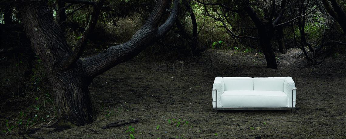 Con LC3 la logica della modernità attua una separazione tra la struttura portante in metallo e gli elementi imbottiti, richiamando la relazione architettonica tra la struttura portante in cemento e gli elementi di tamponamento. In questo caso quattro cuscini, privi di legami, sono disposti in una gabbia di tubi di acciaio verniciato o cromato che costituisce il supporto primario del mobile in ogni sua tipologia, dalla poltrona con bracciolo singolo o doppio ai divani a due o tre posti. Nel corso degli anni Cassina ha collaborato a stretto contatto con Charlotte Perriand, con la sua erede e con la Fondatiòn Le Corbusier per introdurre nuove versioni e finiture che pur reinterpretando il progetto originale ne rispettano pienamente l’autenticità. Tra queste spicca la variante LC3 Outdoor, con struttura in acciaio inossidabile e una speciale verniciatura goffrata in 5 colori. Le cuscinature sono rivestite con tela idrorepellente.a garantire massima durata e affidabilità in tutte le condizioni climatiche.