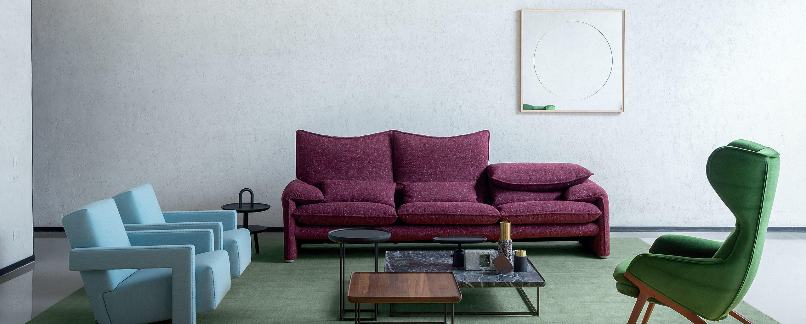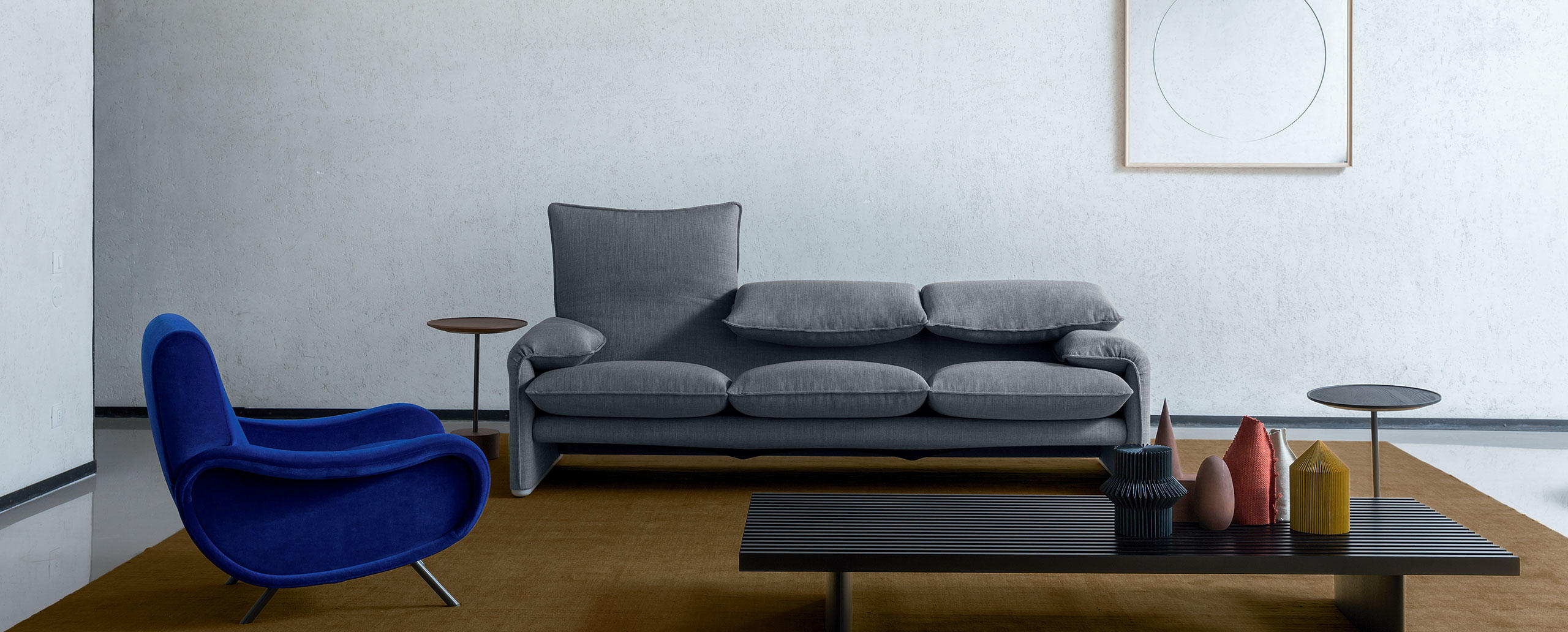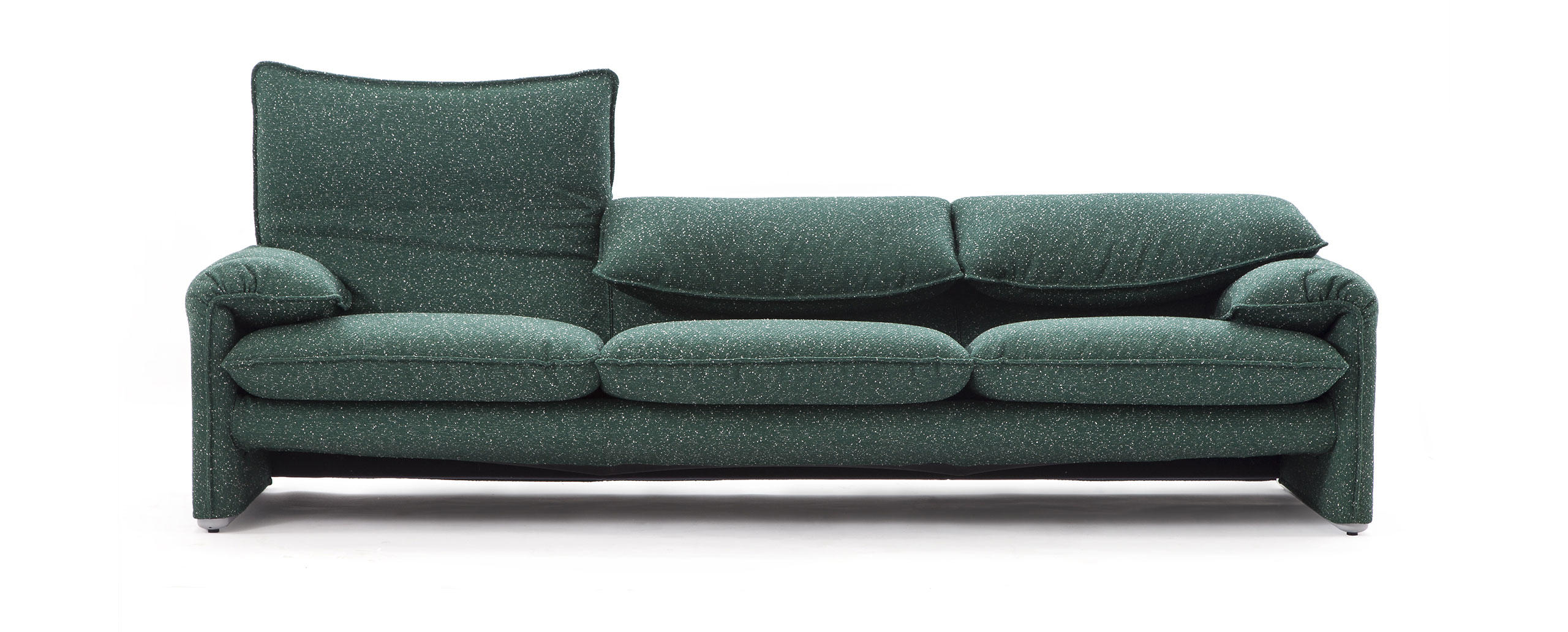 Un best-seller internazionale dalle forme calde e rassicuranti, in cui la possibilità di movimento dello schienale, l’aspetto soffice e l’imbottitura esaltano il comfort dando vita a molteplici interpretazioni. Oggetto di numerose imitazioni, Maralunga introduce la variazione dell’altezza del poggiatesta grazie all’inserimento di una semplice catena da bicicletta nello schiumato: un meccanismo di avanguardia costruttiva brevettato da Cassina, che consente la conversione immediata dello schienale dalla regolazione bassa a quella alta. Nel 2014, in occasione dei suoi primi 40 anni, l’azienda ha compiuto un’ulteriore rivisitazione estetica proponendo l’opzione di sfoderabilità per la versione in tessuto e nuovi dettagli tra cui la cucitura che segue il profilo perimetrale per conferire un gusto più moderno al design. La famiglia include la poltrona, il pouf e i divani a due o tre posti in diverse larghezze.
