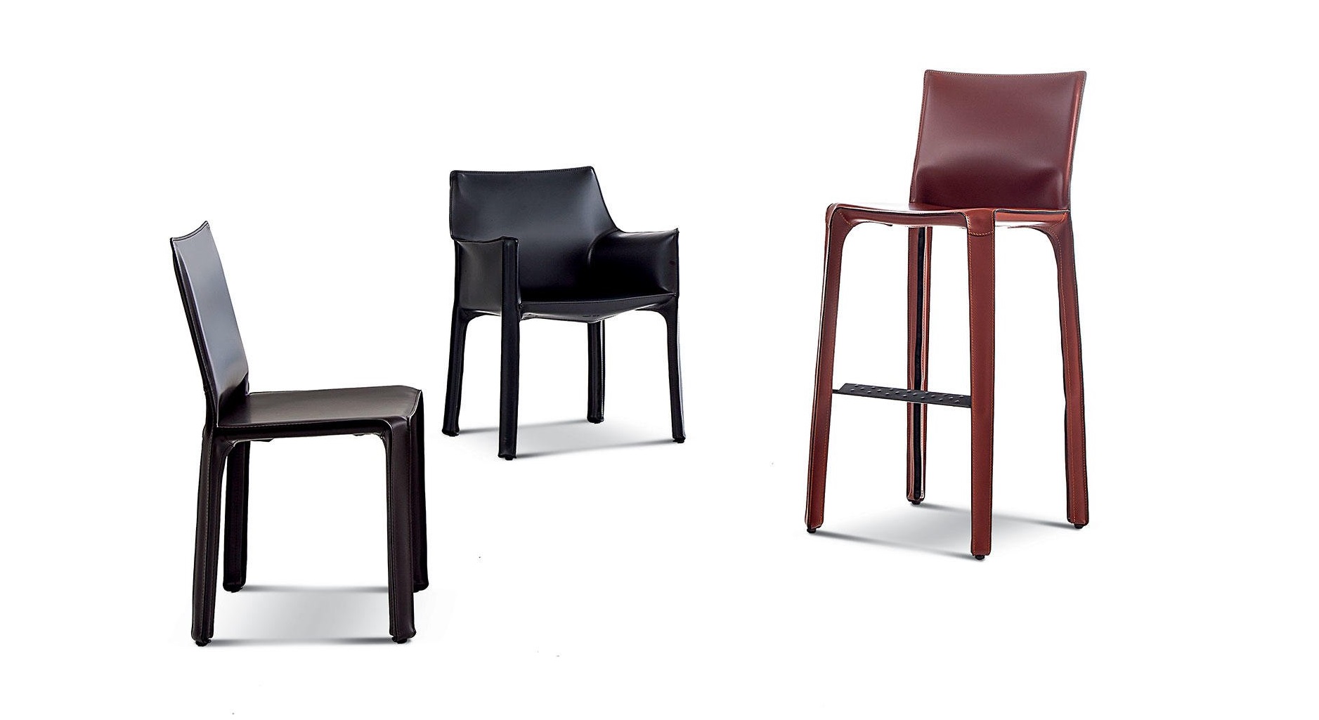 “Un nuovo genere di sedia, tutta in cuoio, oggi molto clonata”. Così Mario Bellini descrive la sedia-poltroncina Cab, best-seller ideato nell’epoca d’oro del design italiano e oggi pezzo iconico della collezione I Contemporanei. Cab è la prima sedia al mondo caratterizzata da un struttura in cuoio autoportante ispirata al rapporto tra scheletro e pelle. Il suo rivestimento è formato da 16 parti in cuoio, fustellate una ad una e successivamente sottoposte a 14 lavorazioni manuali. Le singole parti tagliate vengono infatti cucite insieme solo dopo aver subito un procedimento di scarnitura volto ad assottigliare lo spessore delle porzioni da accoppiare. Il rivestimento viene poi calzato su uno scheletro d'acciaio e chiuso con cerniere lampo come un abito sartoriale. Oltre all’ampia varietà di colori per la seduta in cuoio, la proposta include la variante in cuoio pigmentato nelle tonalità del nero, marrone e rosso bulgaro.