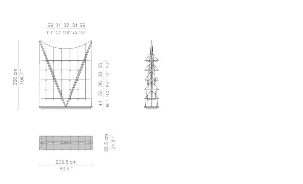Una libreria che sfida le leggi della statica e oltrepassa audacemente le convenzioni dell’equilibrio. Un vero e proprio manifesto della capacità progettuale e costruttiva di Cassina, che dopo un lungo periodo di studio e rielaborazione, e grazie all’intervento delle tecnologie più avanzate, ha rieditato il modello realizzato nel 1940 da Franco Albini come unico esemplare per la sua dimora milanese. Il rispetto dell’anima autentica del progetto, con la sua forte carica sperimentale e il suo design sorprendentemente lineare, preserva la poetica di sottrazione alla base della struttura, creando intervalli atmosferici di aria e luce che sembrano far galleggiare i libri e gli oggetti nello spazio. Cassina restituisce così alla cultura del design uno dei suoi pezzi più iconici, elevato allo status di opera d’arte che rivive nella contemporaneità preservando la sua magia originaria.