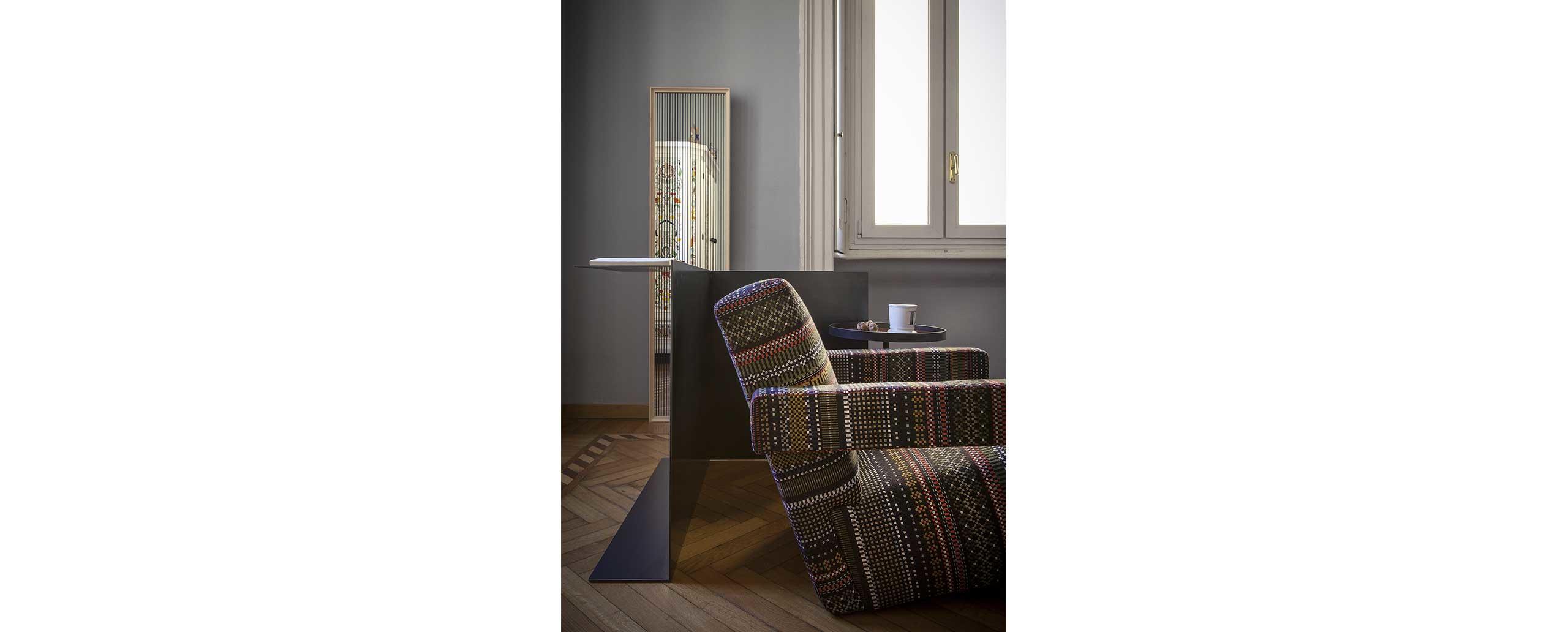 Il tessuto Point è il risultato della collaborazione tra il designer/stilista inglese Paul Smith e Maharam Design Studio.
