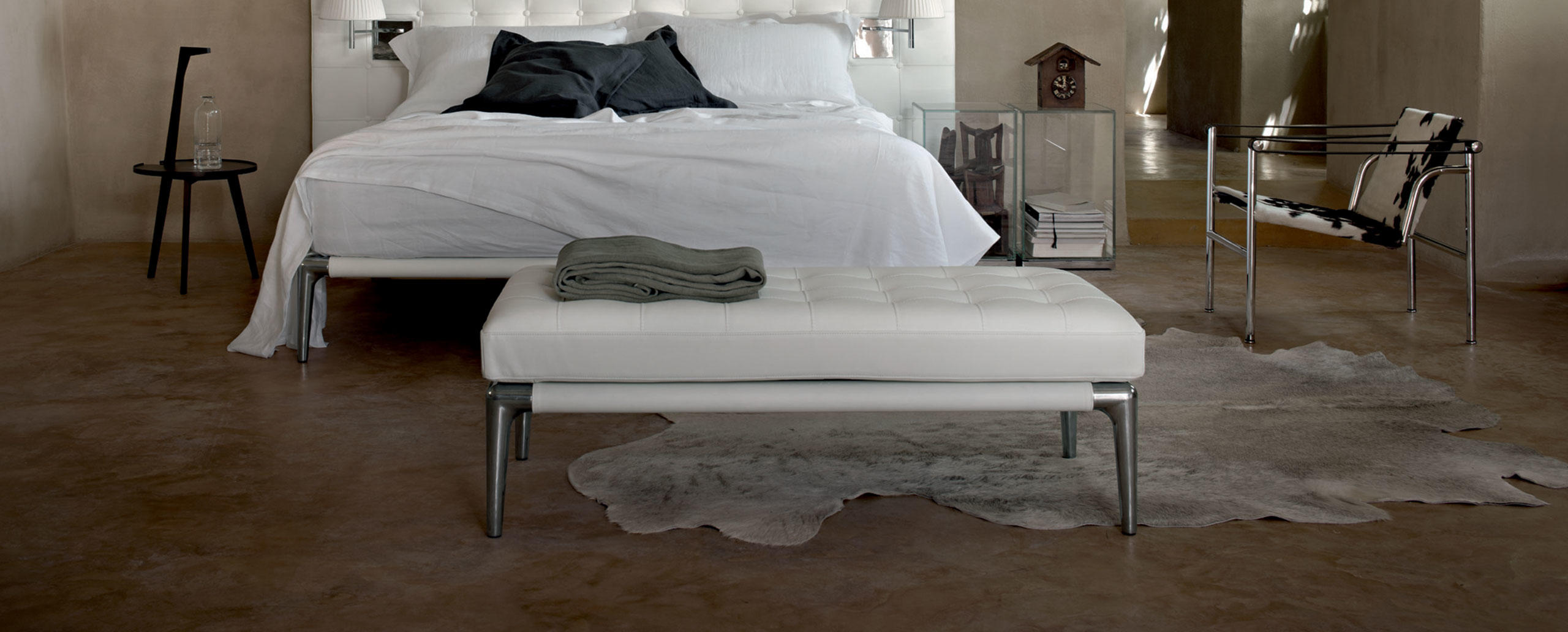 Da abbinare al letto disegnato da Philippe Starck, il comodino Volage è un parallelepi-pedo in vetro extrachiaro con base in acciaio cromato. Aperto sul fronte, può essere usa-to come bedside table o come contenitore. Completano la collezione il letto e una panca.