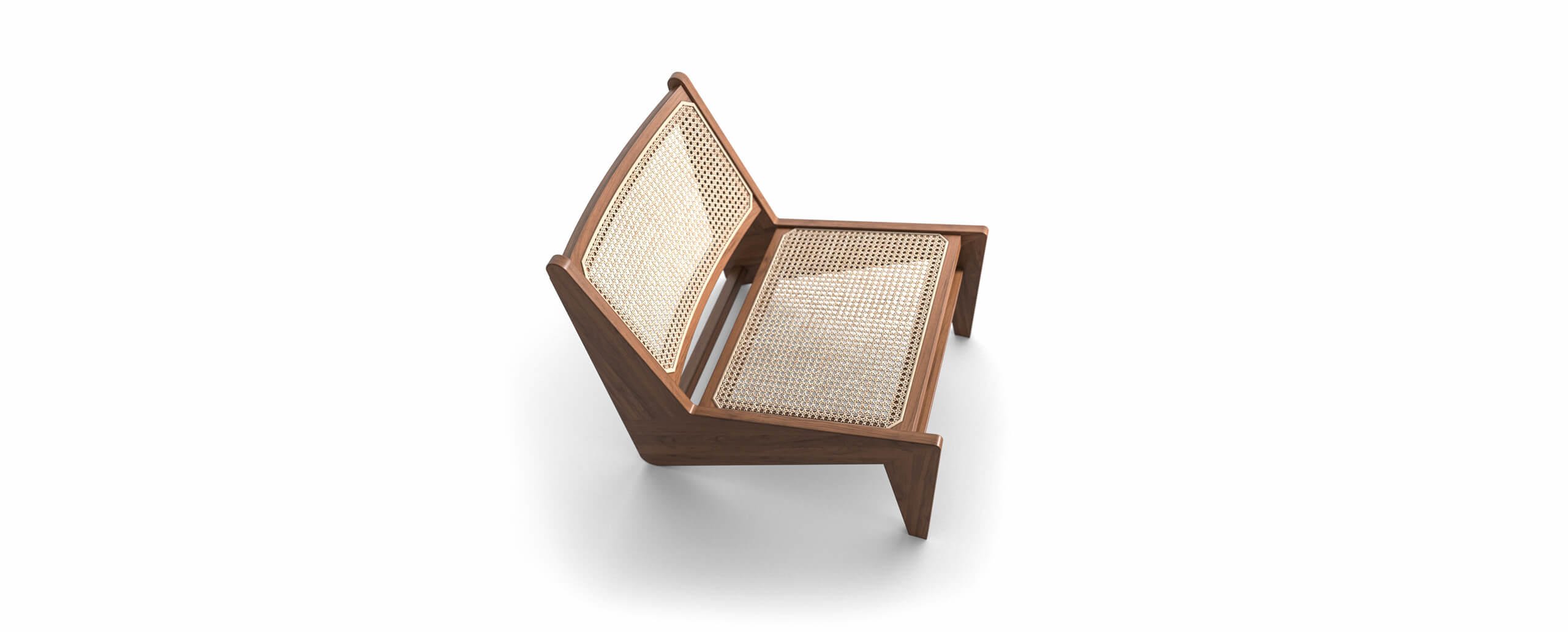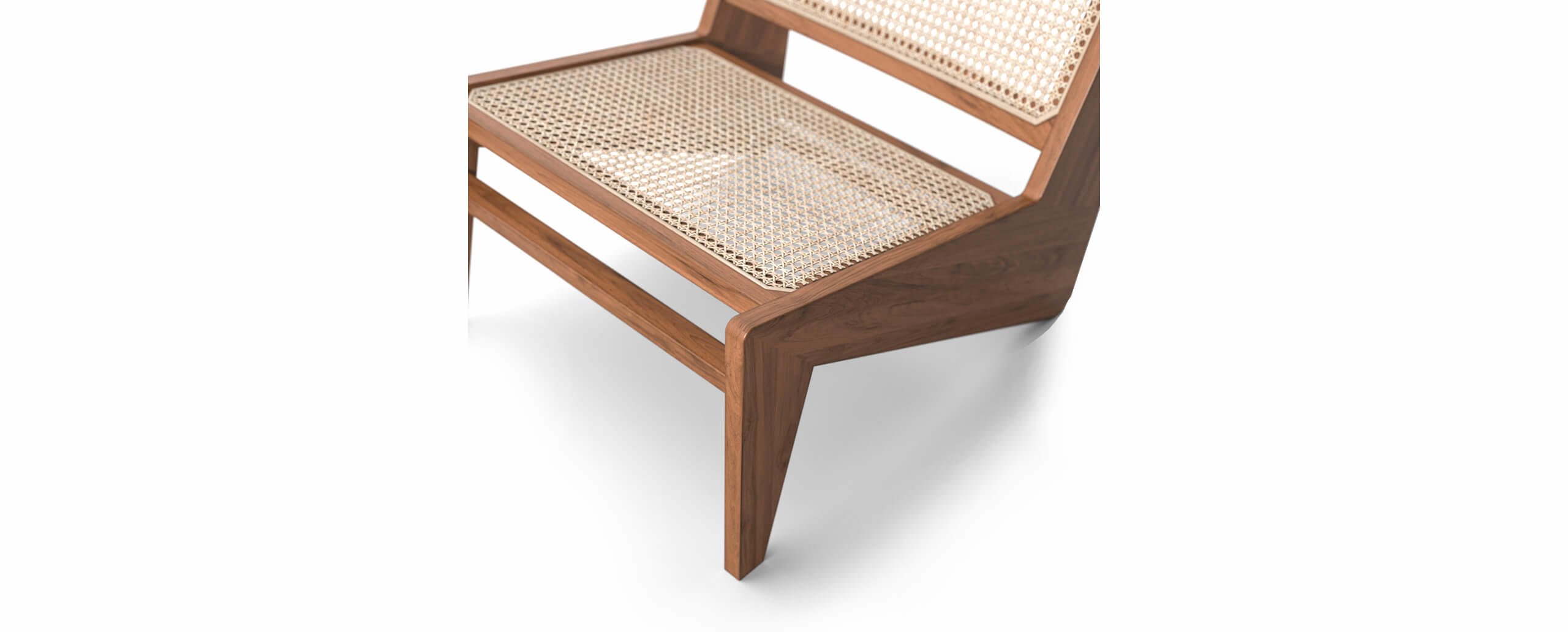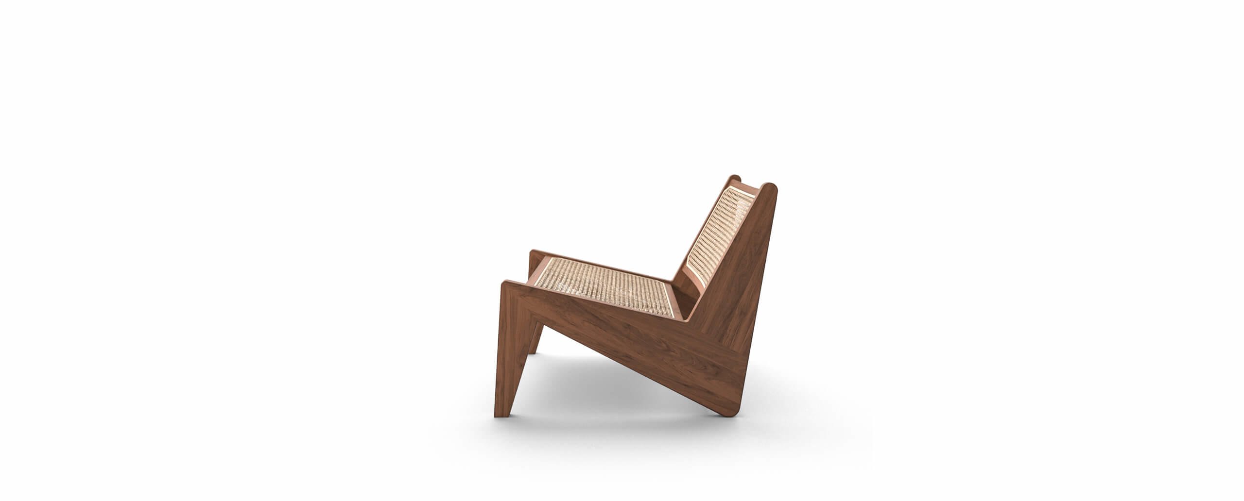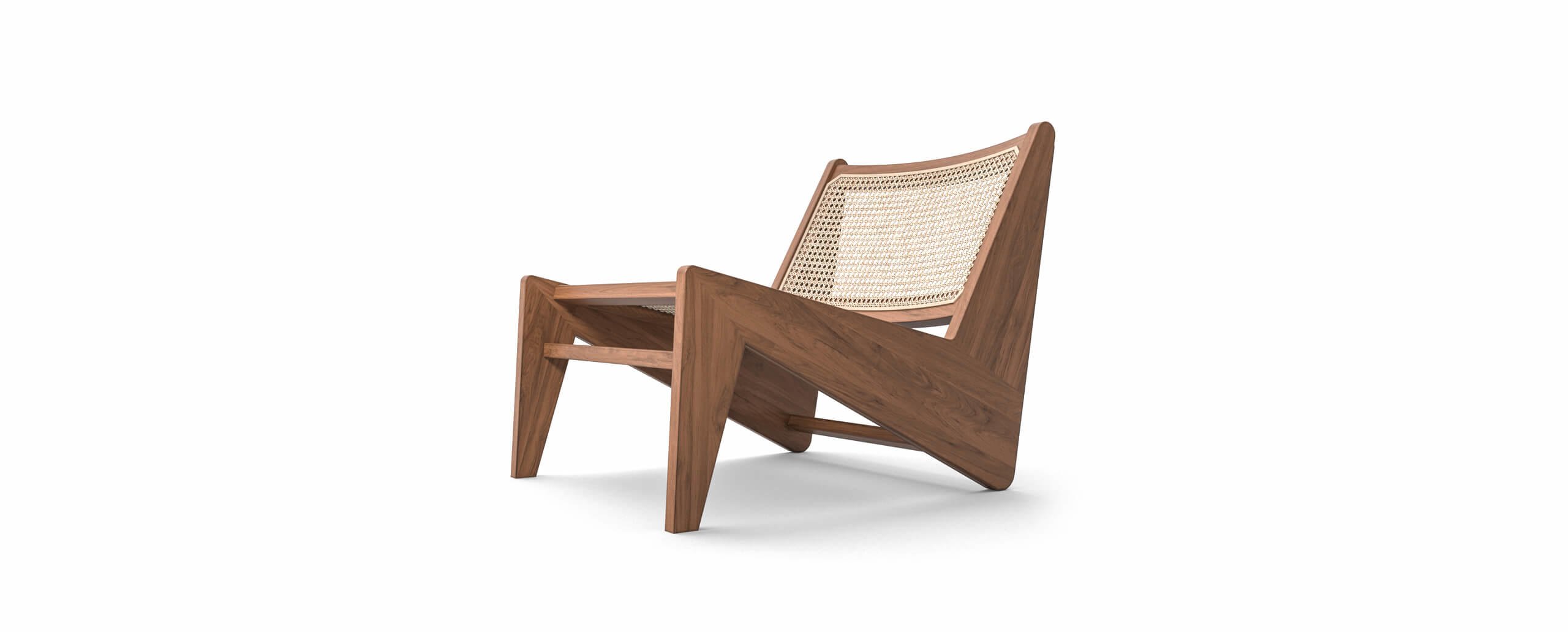 Cassina continua lo studio degli arredi della città di Chandigarh e aggiunge alla Collezione Hommage à Pierre Jeanneret la poltroncina Kangaroo, che si distingue per le forme essen-ziali e i materiali semplici, in equilibrio tra gli ideali moderni europei e lo spirito tradizionale indiano. Questa seduta bassa, realizzata per l’Aula dell’Ospedale Generale della città ma presente anche in molte case private, si caratterizza per la forma a “Z” dei fianchi, costituiti da una sequenza di tre elementi complanari vagamente triangolari posti in continuità. Se-dile e schienale hanno la tipica impagliatura all’interno del telaio in legno, per il quale l’edizione del Centro Ricerche e Sviluppo di Cassina propone, oltre alla storica versione in teak, due varianti in rovere naturale e rovere tinto nero, eseguite nella storica falegnameria dell’azienda. Un cuscino opzionale è disponibile per assicurare una maggiore protezione e comodità.