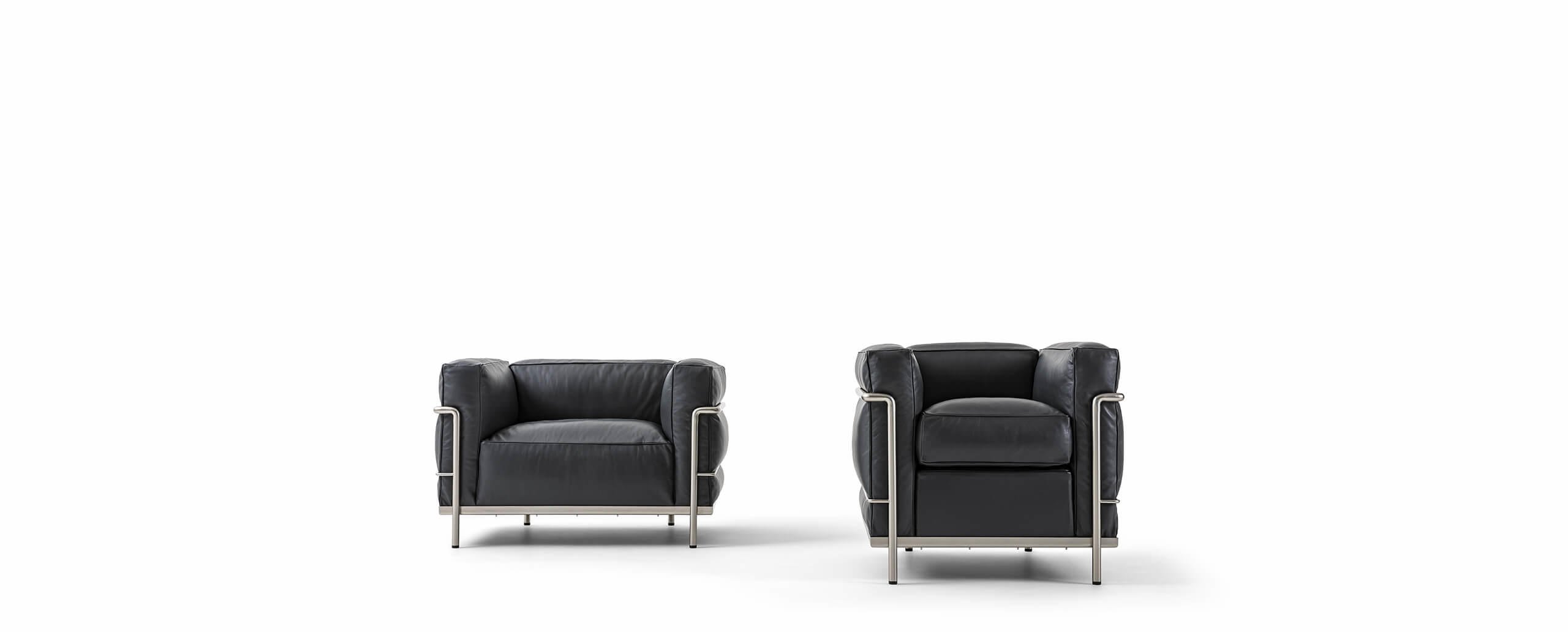 Con LC3 la logica della modernità attua una separazione tra la struttura portante in metallo e gli elementi imbottiti, richiamando la relazione architettonica tra la struttura portante in cemento e gli elementi di tamponamento. Il modello viene aggiornato in versione ecologica, nel rispetto del progetto originale e della natura, da sempre costante fonte di ispirazione per Le Corbusier, Pierre Jeanneret e Charlotte Perriand. Grazie allo studio eseguito da Cassina LAB, una collaborazione tra il Centro di Ricerche e Sviluppo di Cassina e Poli.design del Politecnico di Milano, gli elementi schiumati sono integrati con polioli ecocompatibili, derivanti da fonti bio rinnovabili, e una fibra soffiata, ottenuta da PET in gran parte recuperato dagli oceani, è introdotta nell’imbottitura dei cuscini e delle sedute per renderla più comoda e sensibile all’ambiente. La struttura tubolare di Fauteuil Grand Confort Durable è in nichel spazzolato con finitura semi-opaca, un materiale che si contraddistingue per il processo di produzione più sostenibile. Le opzioni ecologiche sono disponibili per tutti i modelli della poltrona e del divano LC3.