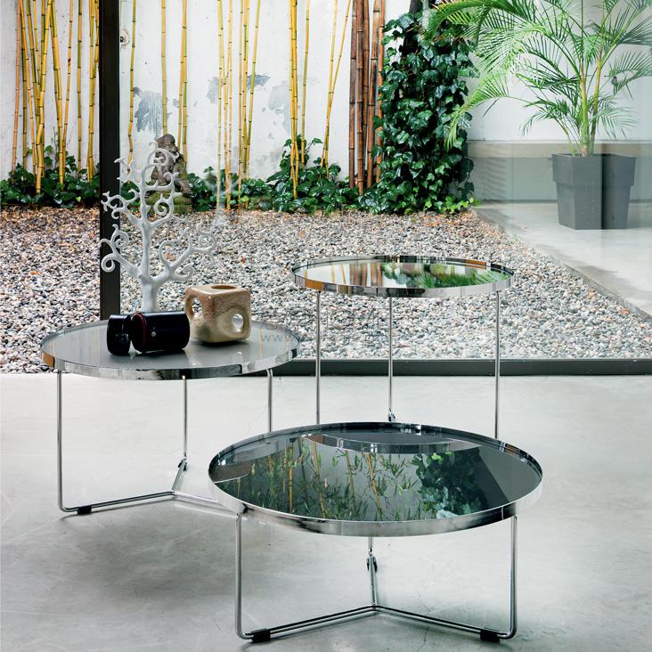 Coffee table with frame in embossed titanium (GFM11) or black (GFM73) lacquered steel, or with base in Bronze and Brushed Bronze top frame. Mirrored bronze glass top.