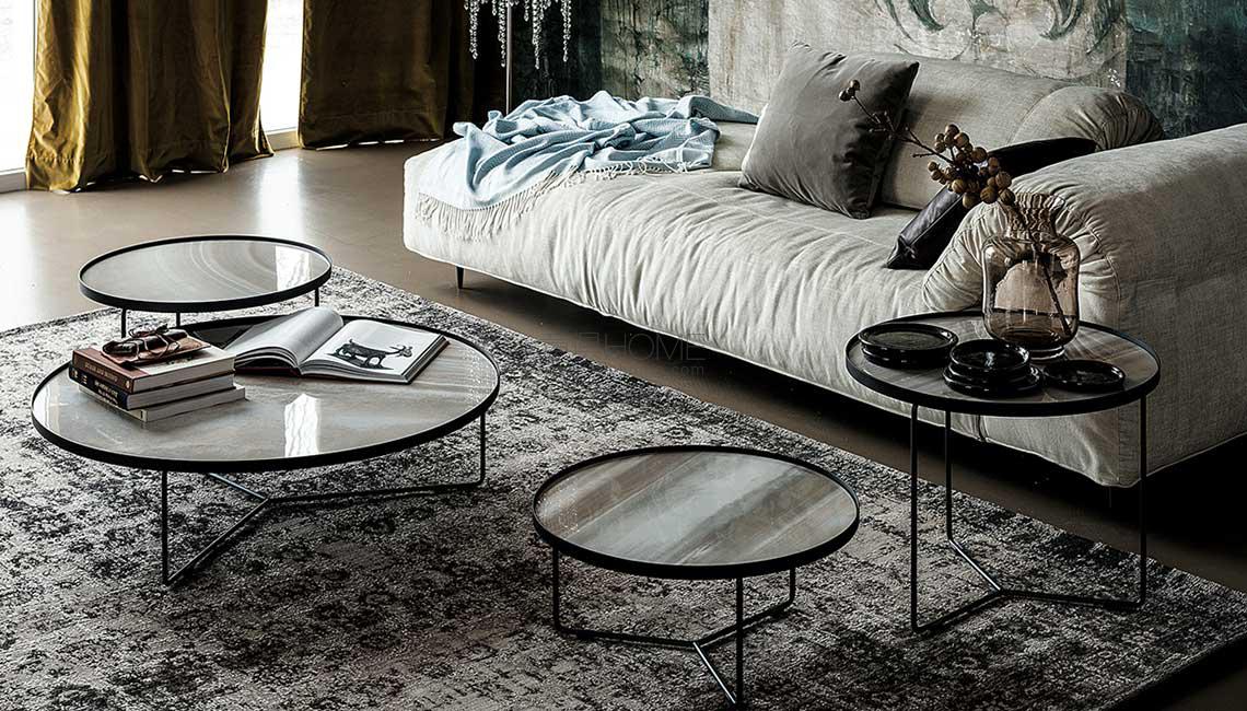 Coffee table with frame in embossed titanium (GFM11) or black (GFM73) lacquered steel, or with base in Bronze and Brushed Bronze top frame. Marmi Calacatta (KM01), Alabastro (KM02), Ardesia (KM04), matt Portoro (KM07), glossy Portoro (KM08), Emperador (KM10), Makalu (KM11), Arenal (KM13) or Zefiro (KZ20) ceramic top.
