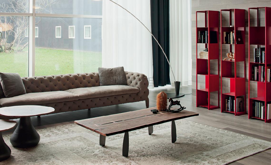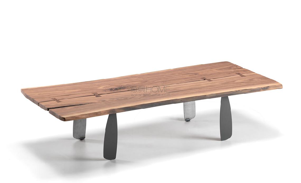 Coffee table with solid Canaletto walnut (NC) top and embossed graphite (GFM69) painted steel feet