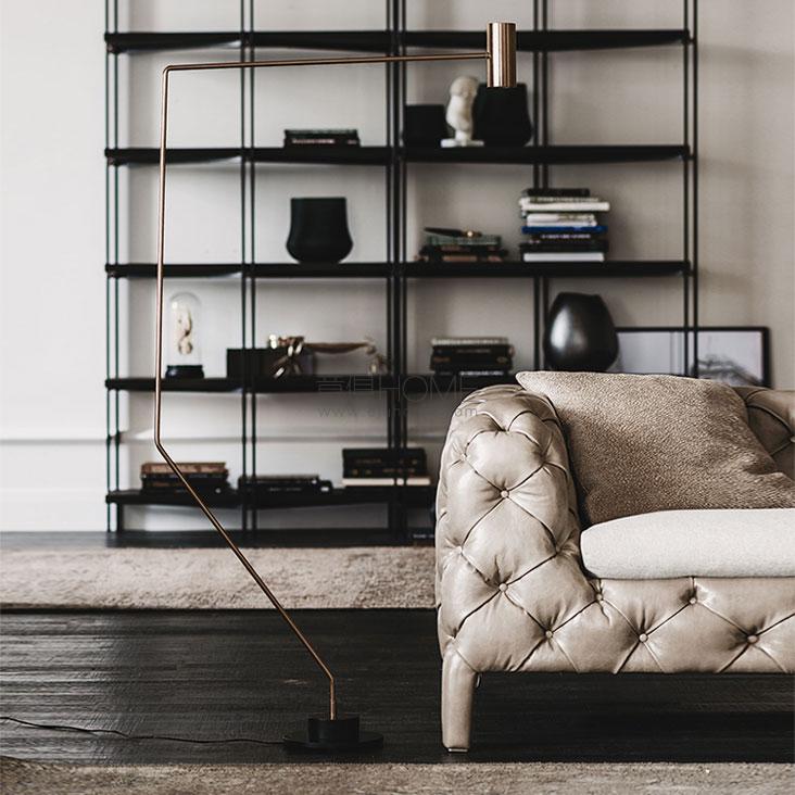 Floor lamp with frame in satin bronze steel (15) and matt black (OP17) painted steel base. Bulb not included.