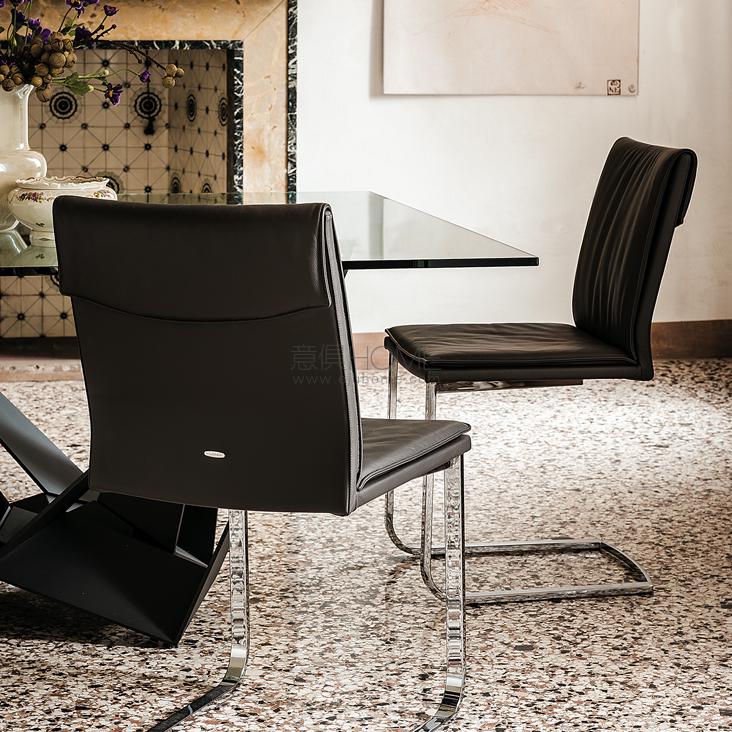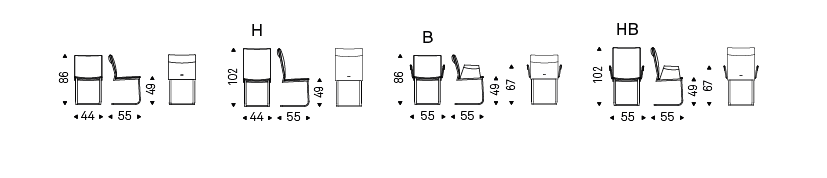 Chair with or without arms with cantilever frame in chromed steel (08). Upholstered seat in fabric, synthetic nubuck, synthetic leather or soft leather as per sample card.