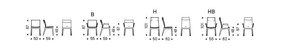 Chair with or without arms in natural ashwood (frN), Canaletto walnut stained ashwood (frNC) or burned oak stained ashwood (frRB). Cover in fabric, synthetic nubuck, micro nubuck, synthetic leather or soft leather as per sample card. The cover is not removable.
