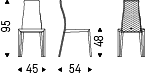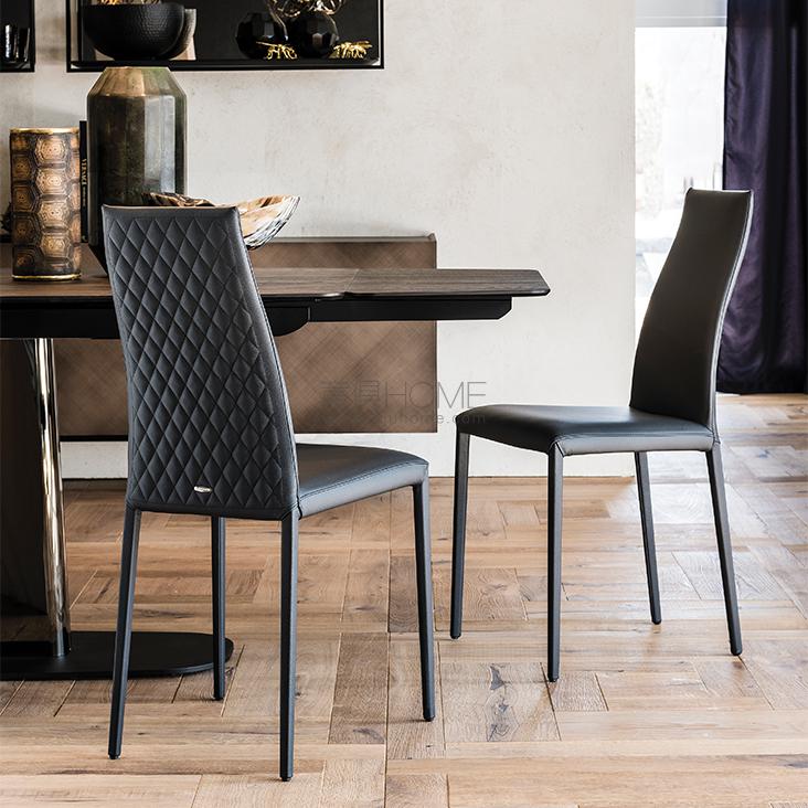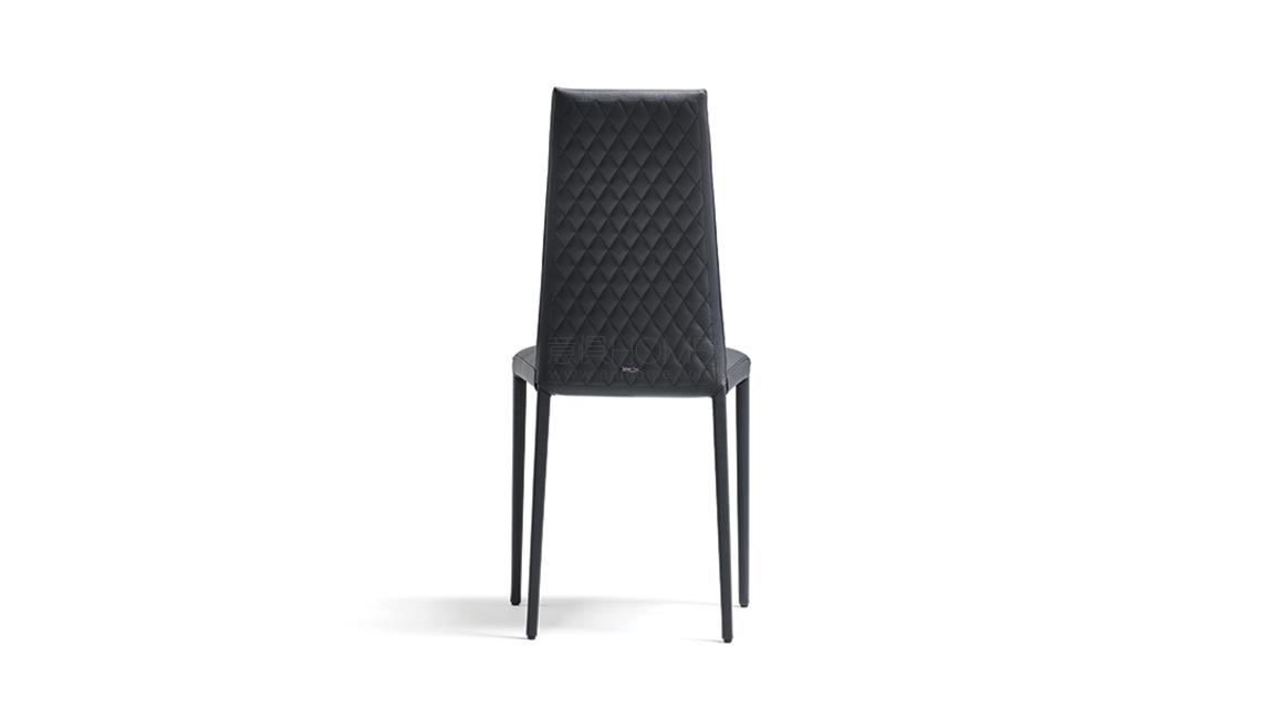 Upholstered chair with steel frame and covered in synthetic leather, synthetic nubuck or soft leather as per sample card. Quilted seatback cover. The cover is not removable.