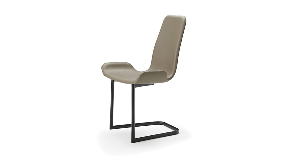 Chair with cantilever frame in titanium (GFM11), graphite (GFM69), white (GFM71) or black (GFM73) embossed lacquered steel. Upholstered seat in fabric, synthetic nubuck, micro nubuck, synthetic leather or soft leather as per sample card. The cover is not removable.