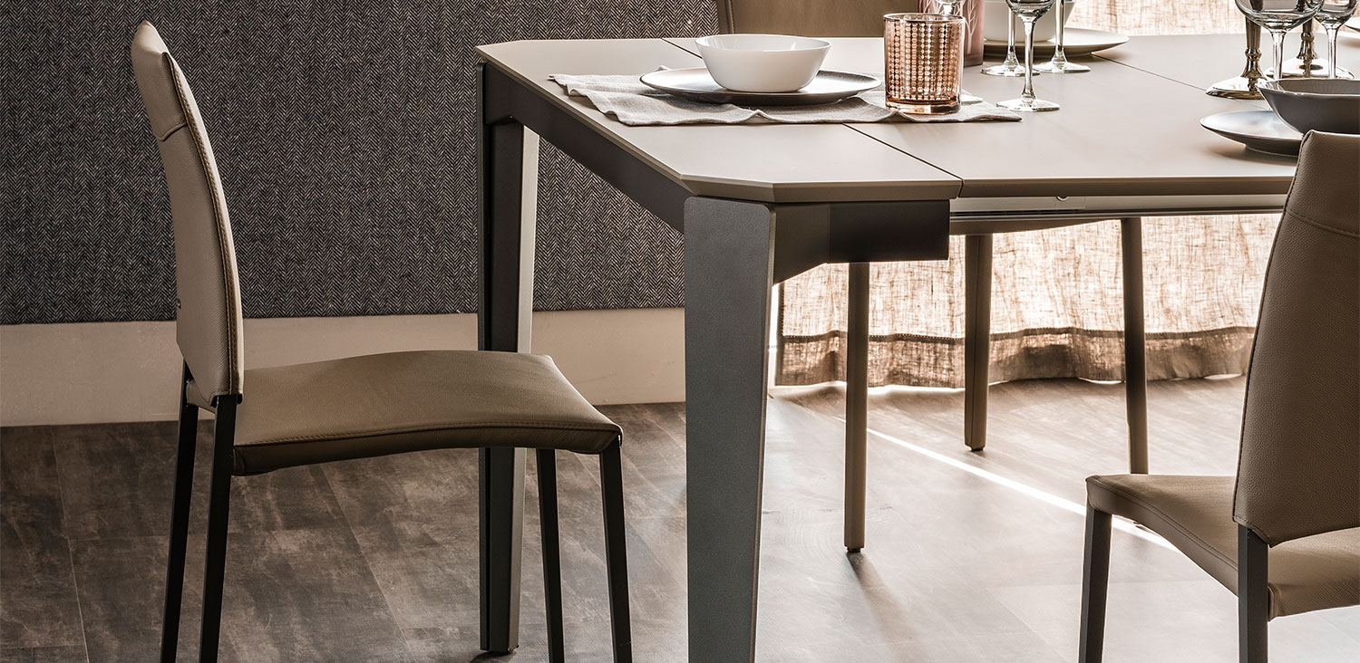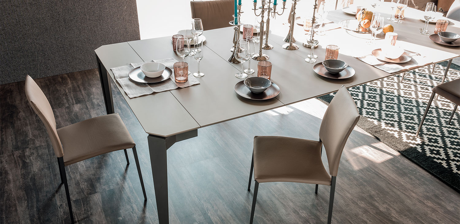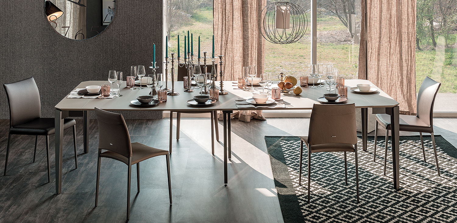 Extendible console with base in graphite (GFM69) or white (GFM71) embossed lacquered steel. Top and extensions in white climb (LM02), grey oxide (LM06), walnut (LM05), grey London Fenix (LM21) or castoro Ottawa Fenix (LM22) laminated wood. Bag for extentions incuded.