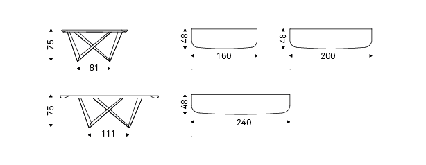 Console with base in titanium (GFM11), bronze (GFM18), graphite (GFM69), white (GFM71), black (GFM73) or mix (GFM69-GFM71) embossed lacquered steel, Brushed Bronze or Brushed Grey steel. Top in Canaletto walnut (NC) with Brushed Grey lacquered and rounded lower profile or elm open pore matt black (OLM73) with Brushed Bronze lacquered and rounded lower profile. Wall anchorage is necessary.