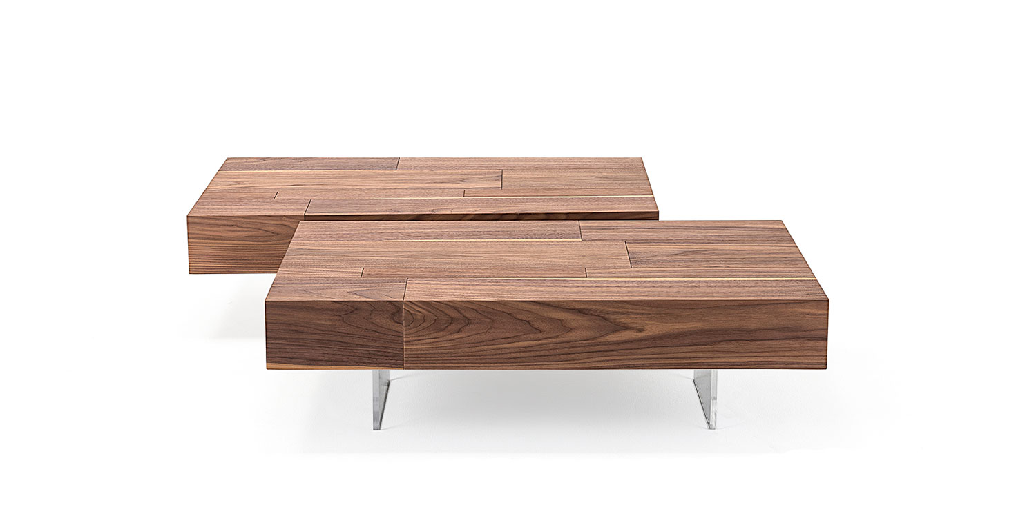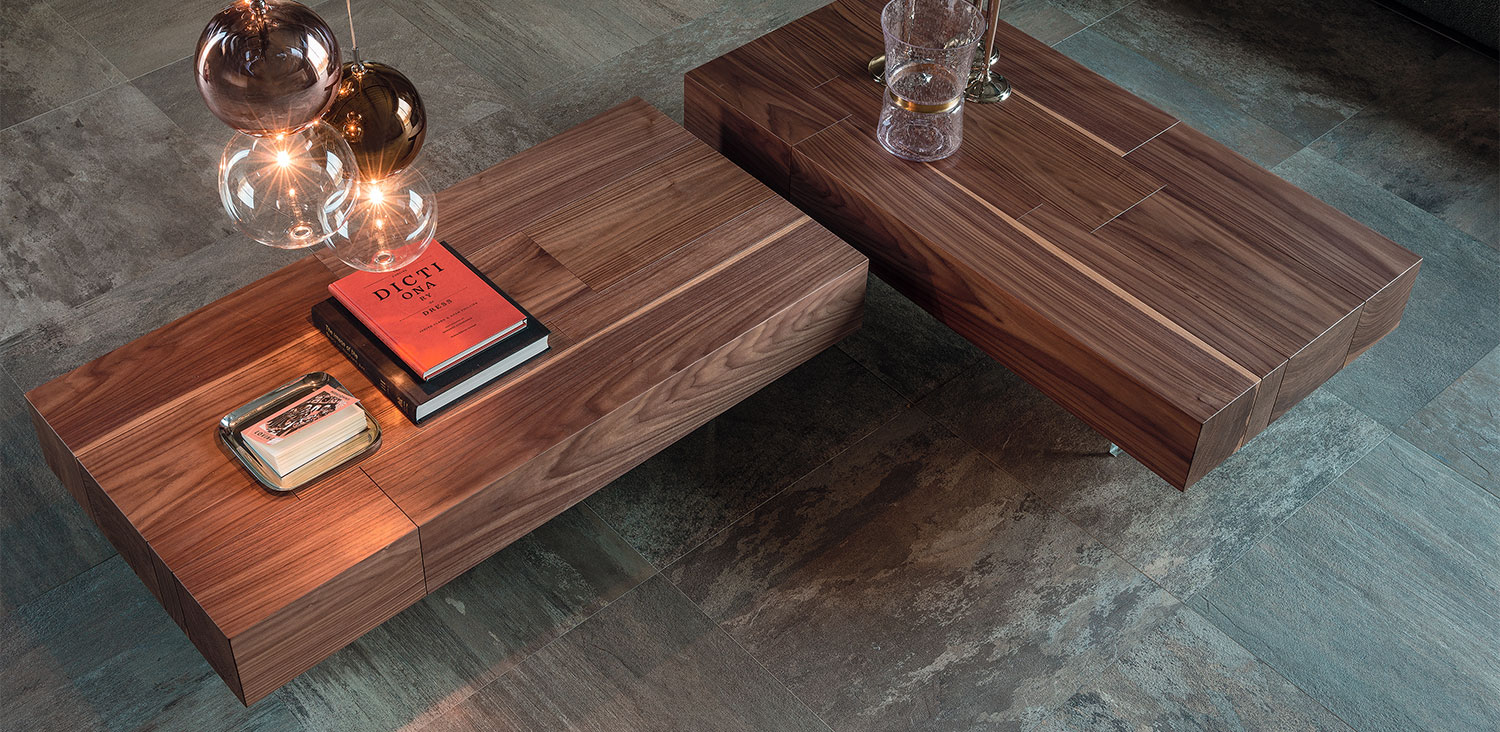 Canaletto walnut (NC) coffee table with trasparent methacrylate feet.
