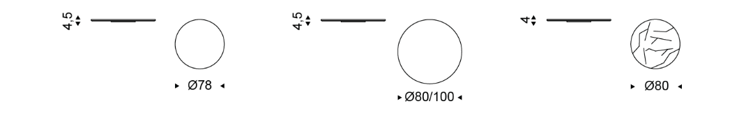 Central swiveling tray in white, black or graphite painted extra clear frosted glass, in Marmi ceramic in Calacatta (KM01), Alabastro (KM02), Ardesia (KM04), Emperador (KM10) or Makalu (KM11), in white Carrara (BC) or Emperador marble (EMP).