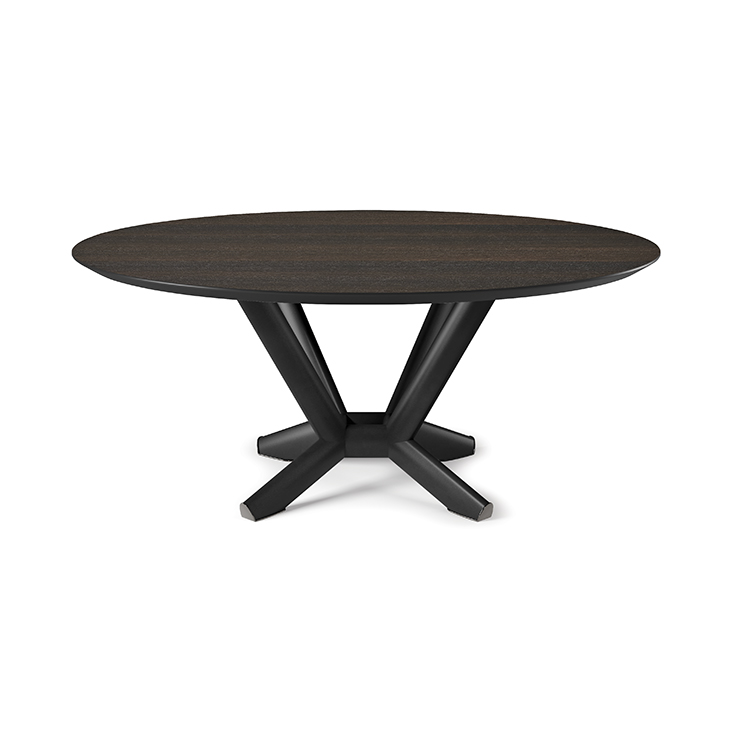 Table with base in titanium (GFM11), bronze (GFM18), graphite (GFM69) or black (GFM73) embossed lacquered steel, Brushed Bronze or Brushed Grey. Top in Canaletto walnut (NC) or burned oak (RB)