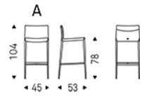 Stool with steel frame covered in synthetic leather, fabric, synthetic nubuck, micro nubuck or soft leather as per sample card. The cover is not removable.