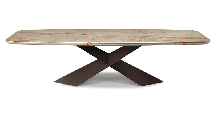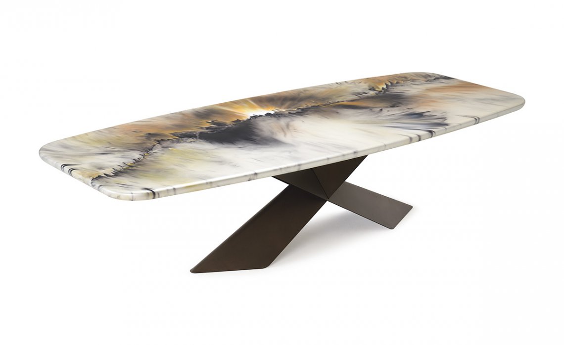 For those devoted to conviviality, even in limited spaces, there are two extendable Drive versions available: one for the refined glass top, with decorative CrystalArt print in different colours, and the other for the Marmi Ceramic top, in several exclusive shades, to make each environment remarkable. The collection is completed by the Signature model, hand-decorated by an artisan collective. Each table is unique and irreplicable, just like a work of art.
