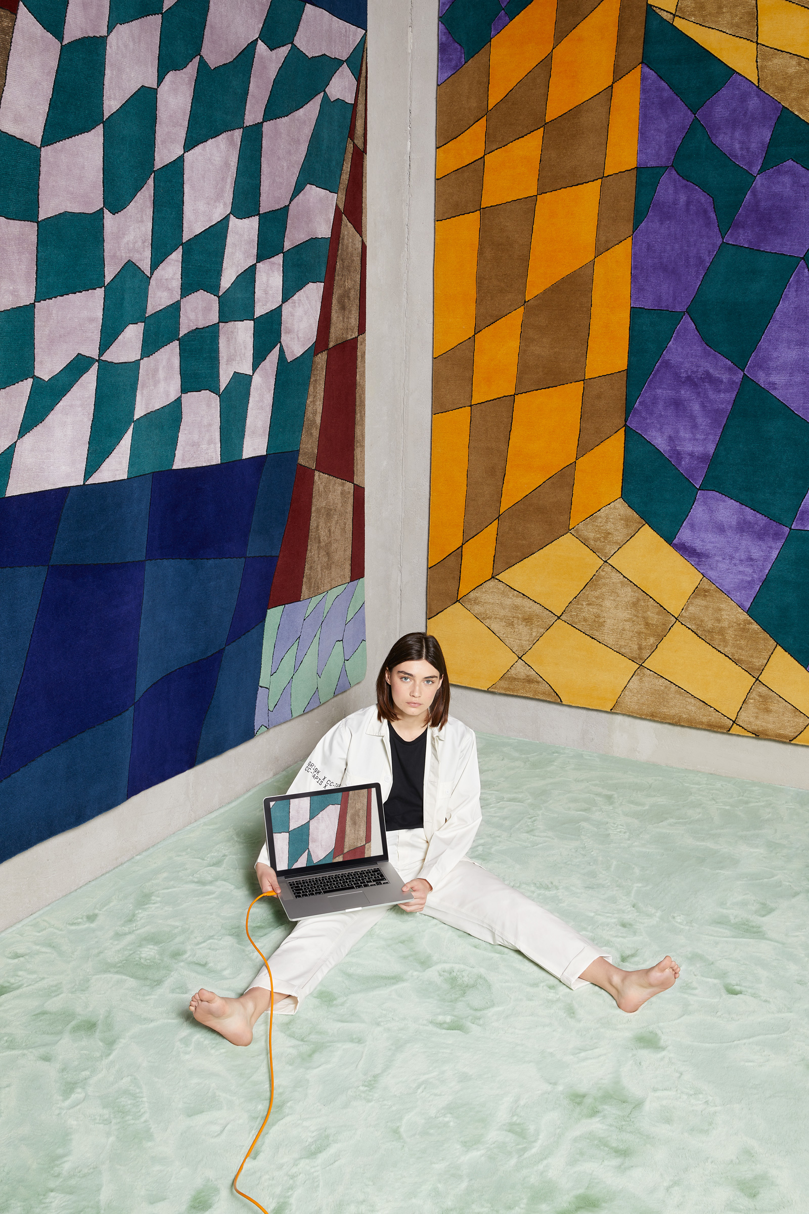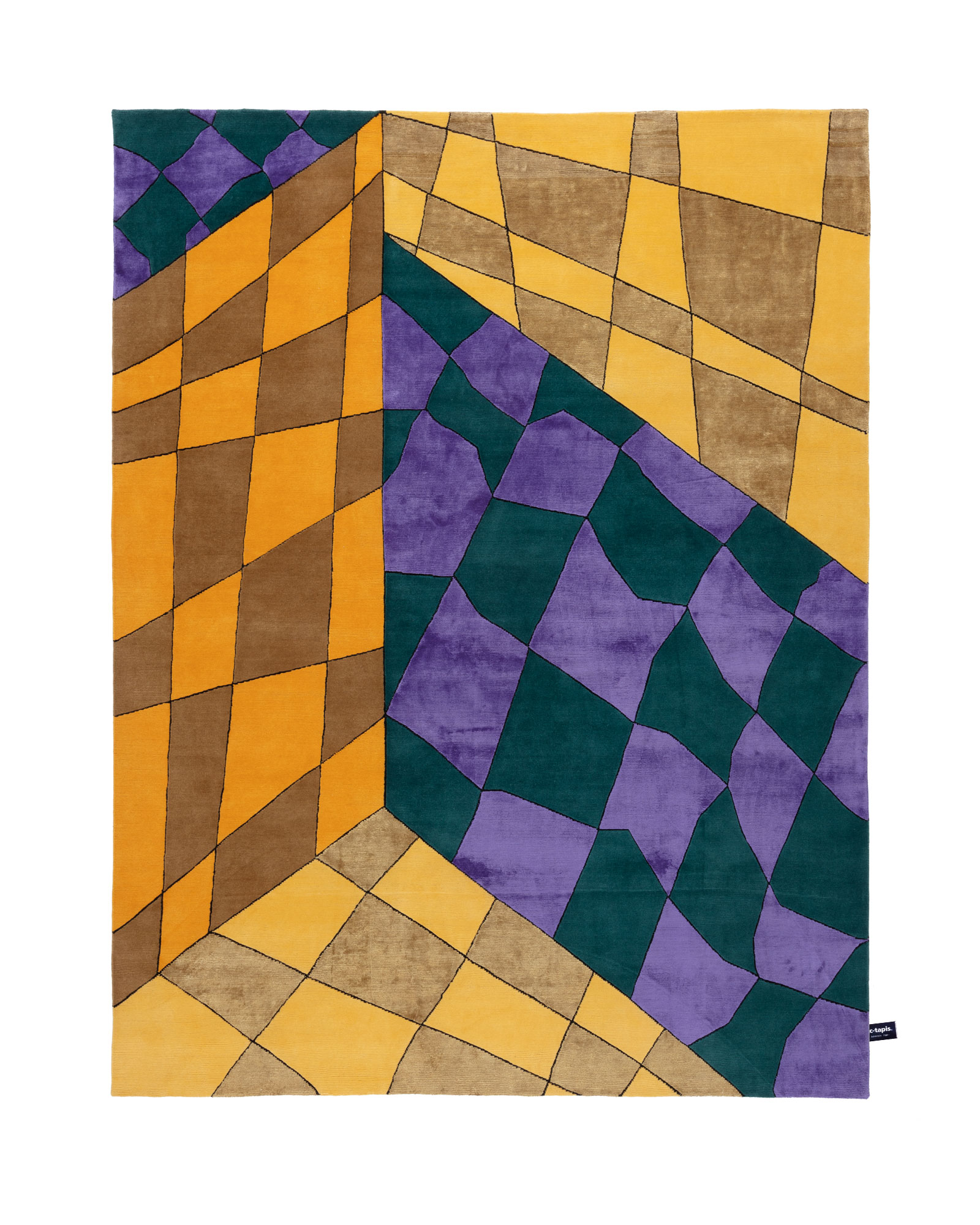 Multiple planes of brilliant chequerboards clash and crackle in Martino Gamper’s Xequer collection for cc-tapis. The bright, piercing colors intertwine and overlap in a psychedelic world born from Gamper’s imagination. Hand knotted with Himalayan wool, pure silk and linen, the materials interplay in the same way as the colour-blocked grids, resulting in a brilliant collision of textures and shades. Twisted lines, distorted perspectives and the graphics play typical of Gamper’s designs culminate in five spellbinding new rugs.