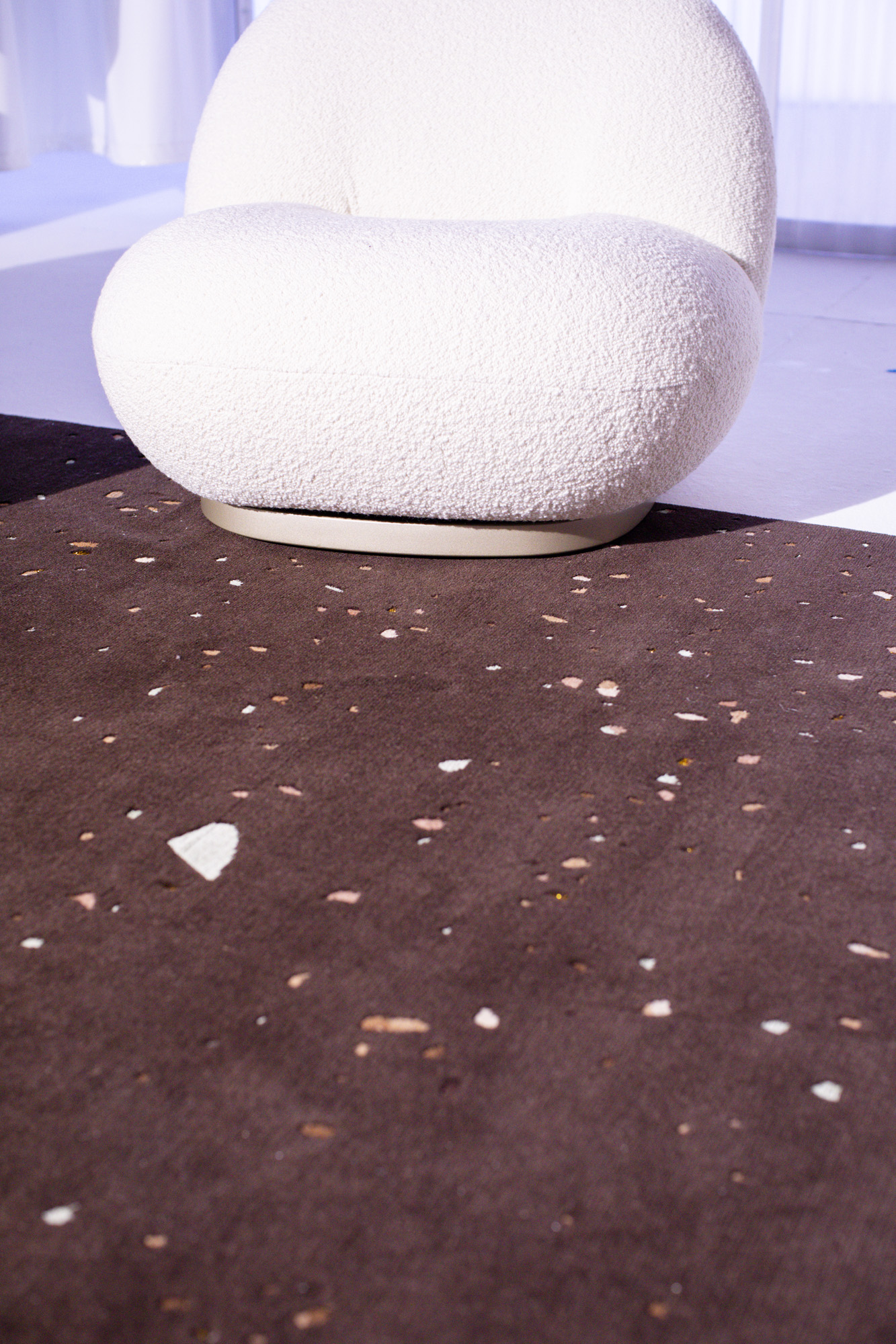 The subtle and abstract nature of the design is the result of Garth Roberts’ research and experimentation. Exploring contemporary and traditional graphics and texture, the haphazard nature of the design was inspired by the world of celebration, confetti and life’s fleeting moments. Creating a subtle and abstract graphic where the apparent randomness of the design has been translated by Tibetan artisans with over 152 000 individual knots per square meter. A randomness which has been custom made and born through experimentation. AFTER PARTY is available in three versions: Black, undyed and pink.