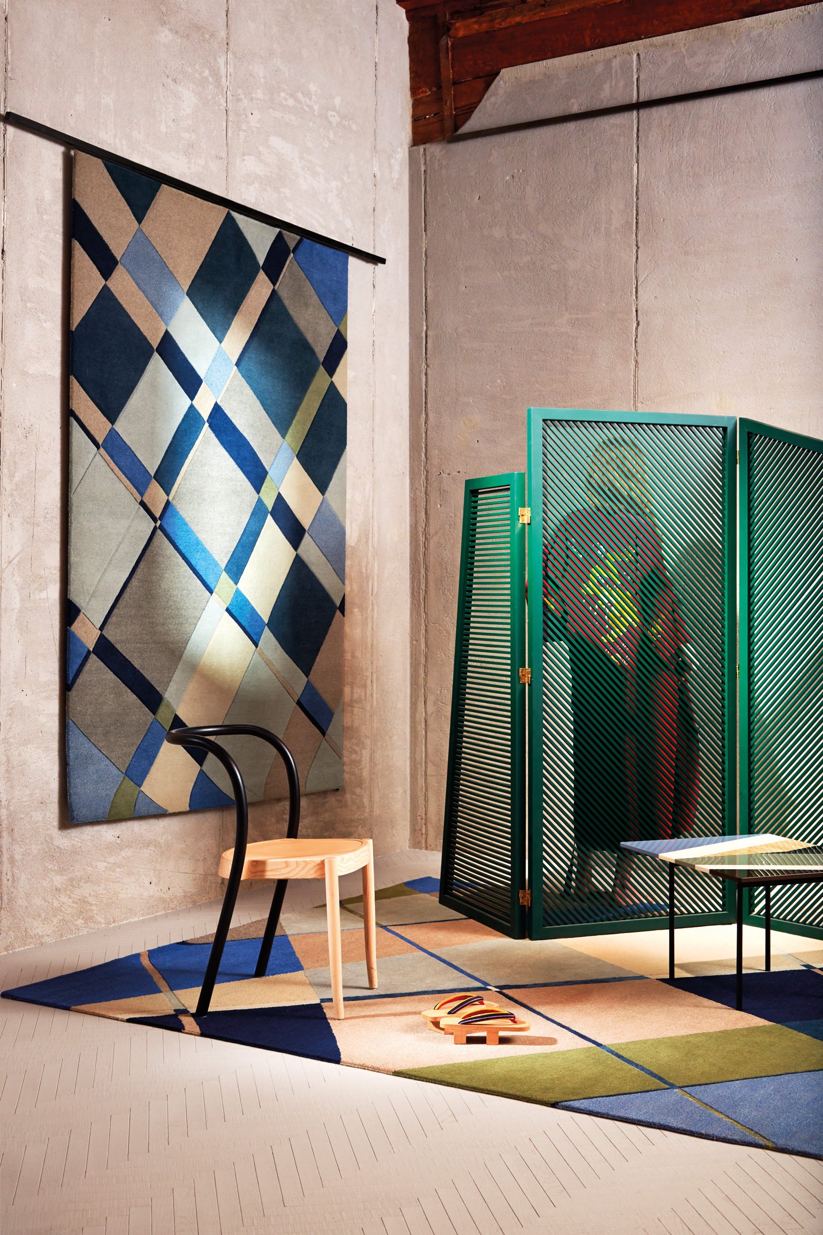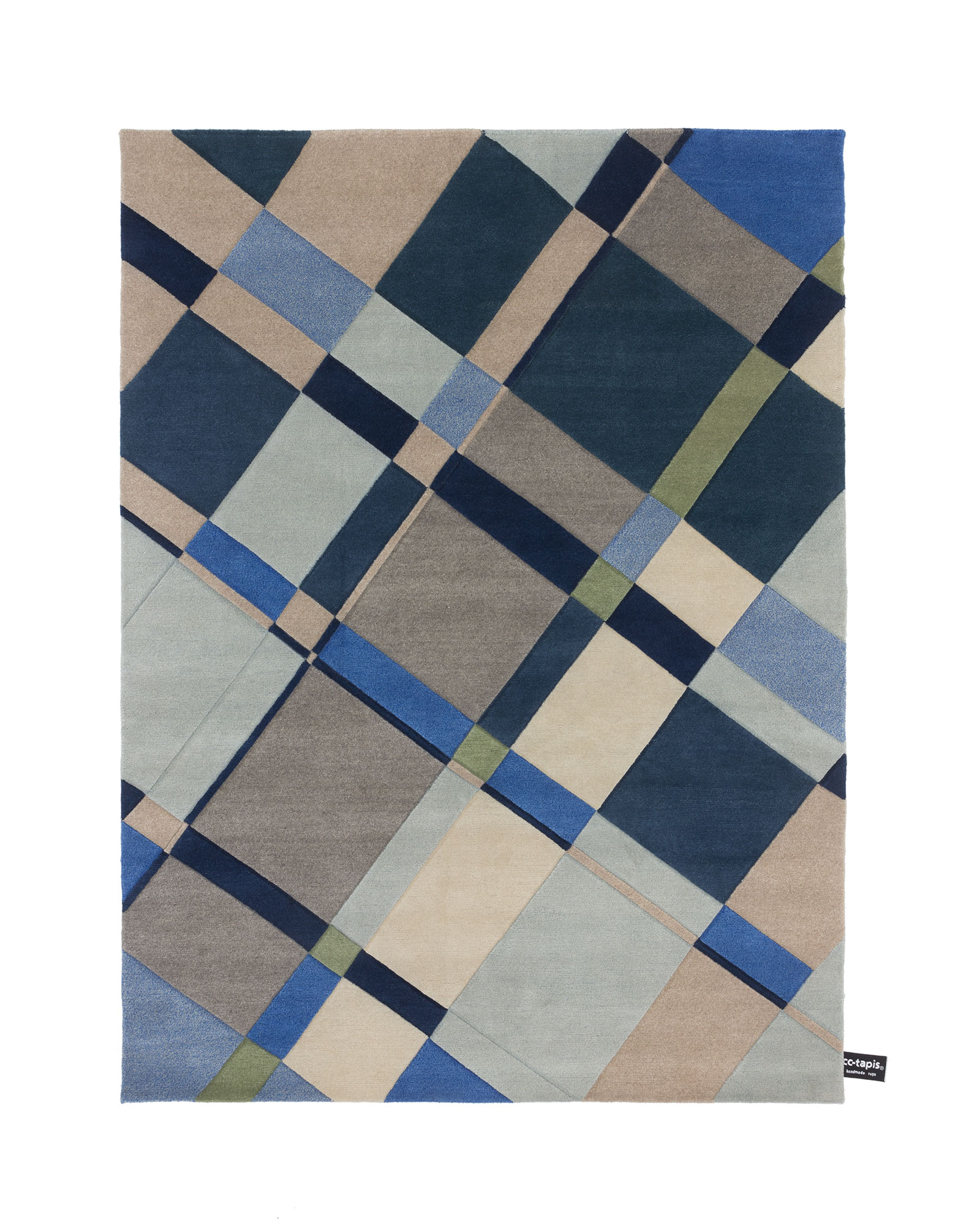 This carpet explores the many skills of the craft of carpet knotting. The various materials are knotted into intersections and crossings of techniques and colors. The weaving manifests itself in the various pile lengths and therefore creates a 3-dimensional texture.
