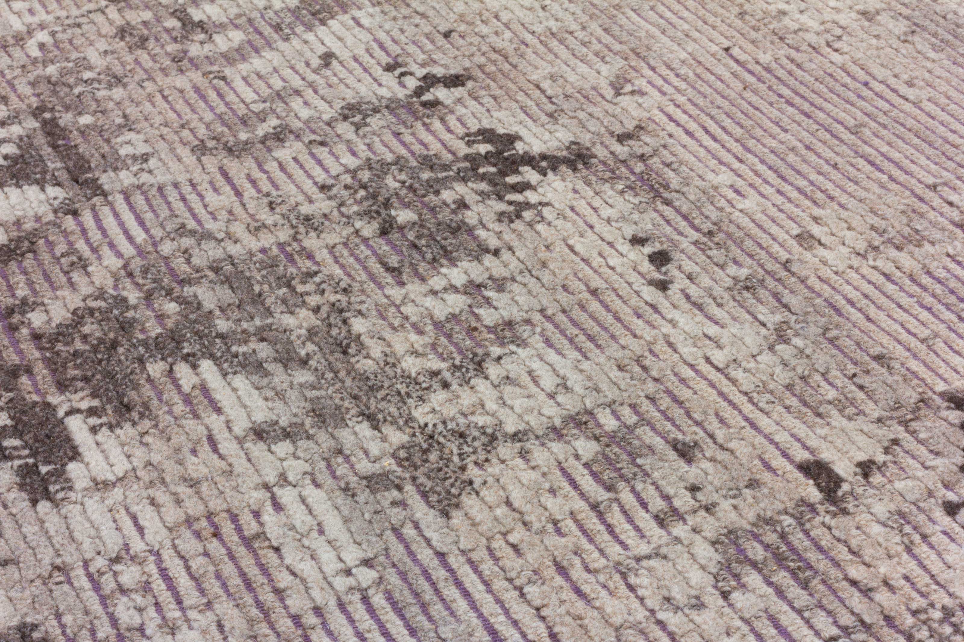 Beauty in simplicity, thick undyed Himalayan wool is knotted onto a colorful cotton warp. The knots are cut at random by the artisans causing some knots to open whilst others remain closed. The color of the cotton is diffused through the natural and warm colors of the wool, more evident where the knots have remained closed and less visible where the knots are open. Creating a beautifully random and worn-down effect which gives the collection its name.