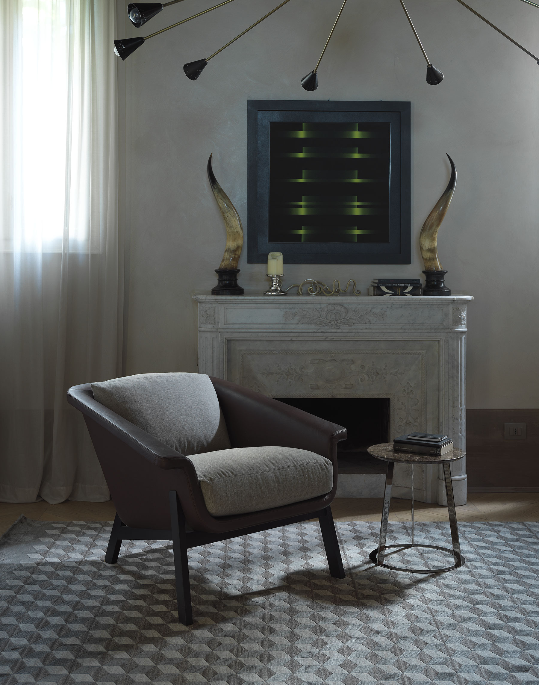 Inspired by ancient geometric motifs, the warm bronze or steel tones give a sense of luxury while the mixture of wool and silk give new life to the metallic colors.