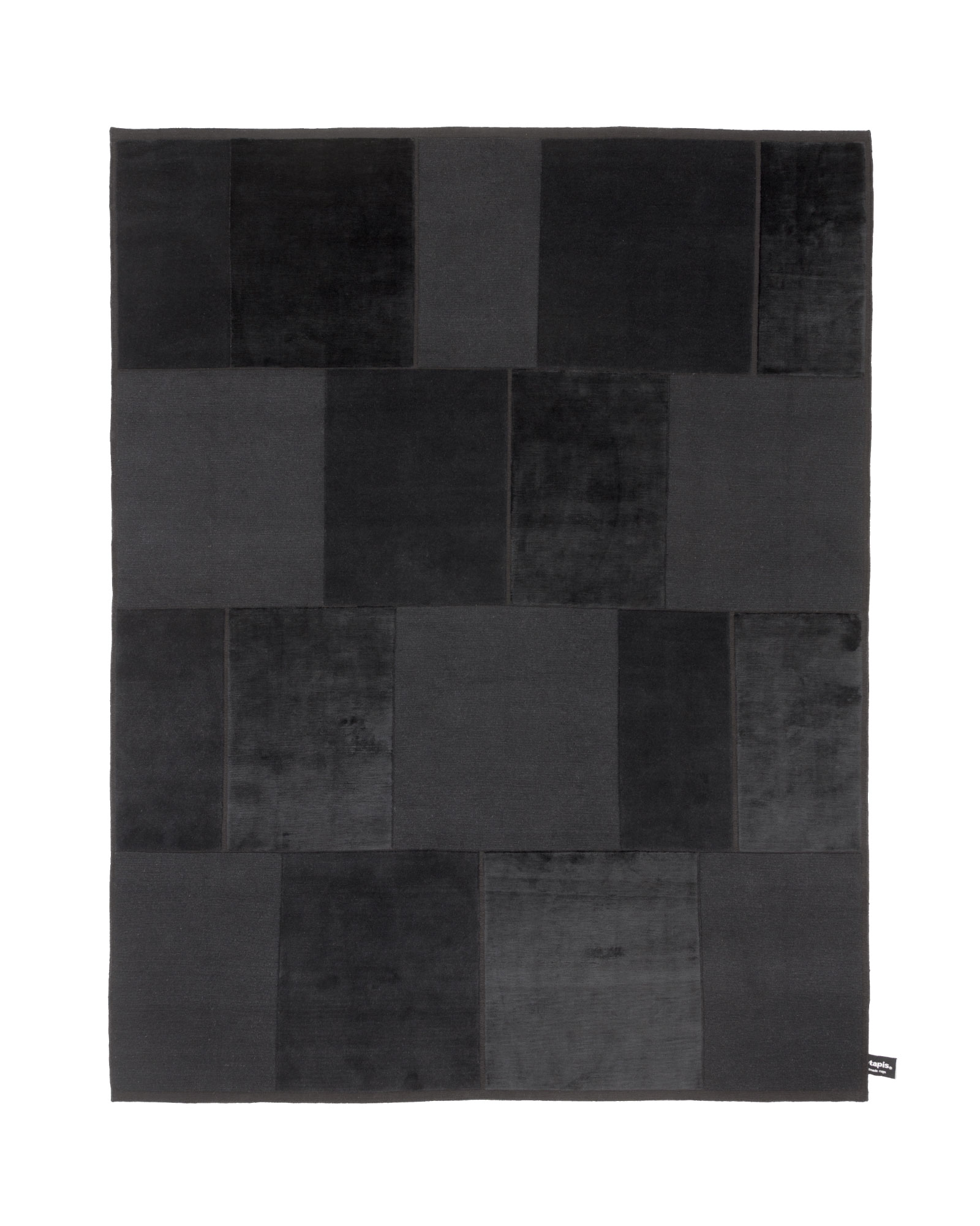 Architectural in design, simple and delicate tonal variations are created by a combination of materials and knotting techniques. Far from patchwork, nothing on this rug is haphazard, the architect designers stay true to their trade and have created a rug where every knot has its place. Panels of pure silk are counter-balanced by panels of thick Himalayan wool made from 2 different knotting techniques and the spaces between the panels show the nude dyed cotton warp.