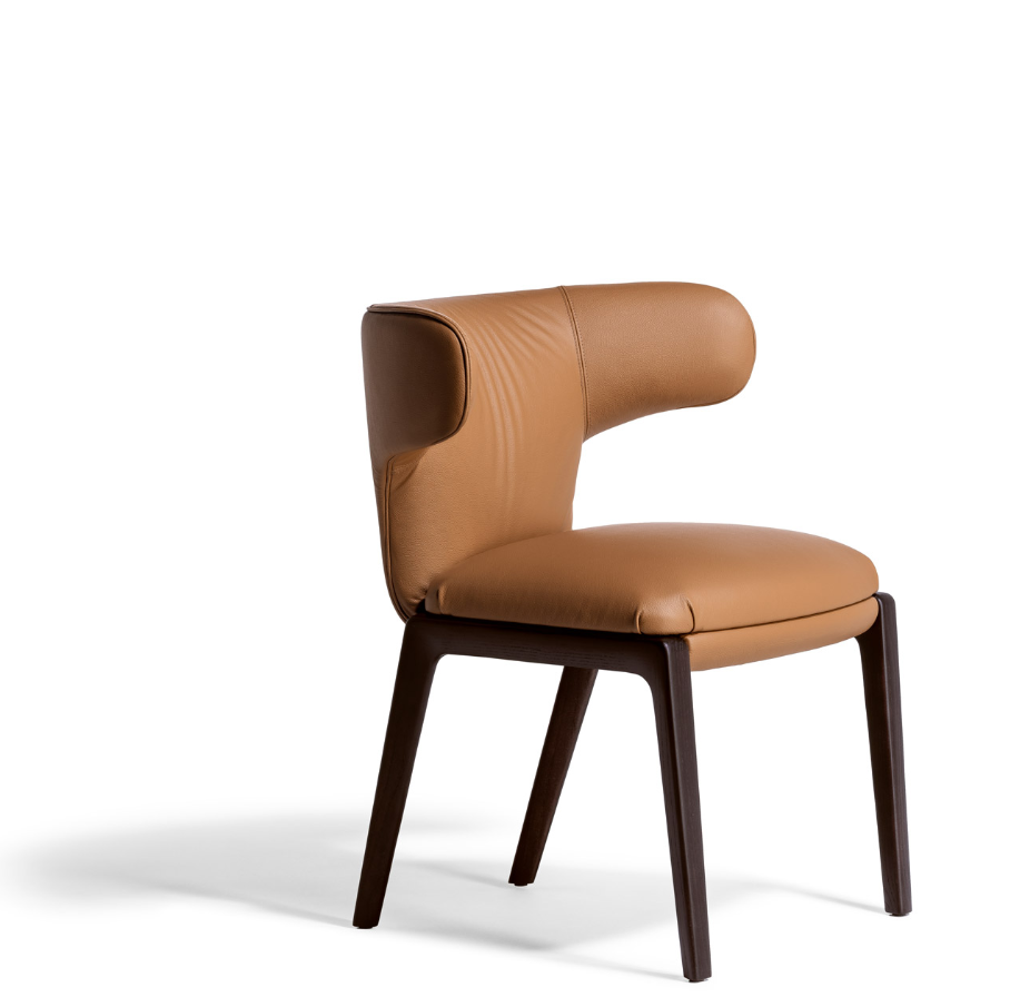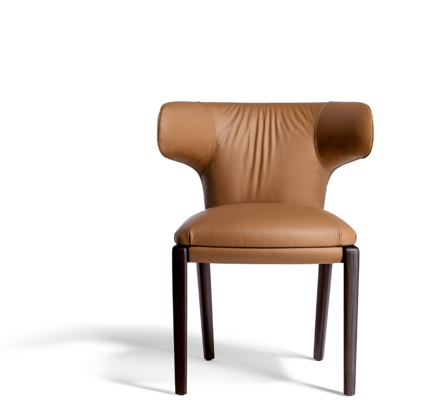 La poltroncina DUO ha lo schienale che si allarga lateralmente in due “orecchie” accoglienti che hanno la funzione di braccioli. Il sedile convesso gioca con la leggera concavità dello schienale, movimentando i volumi. La ricca imbottitura, completamente rivestita in Pelle Frau? o tessuto, aggiunge un surplus di comfort e invita al relax e alla conversazione. Le gambe in legno massello...