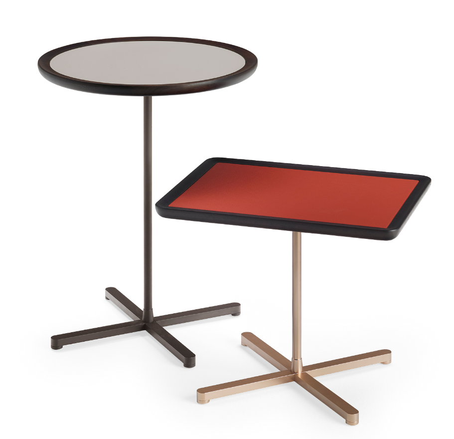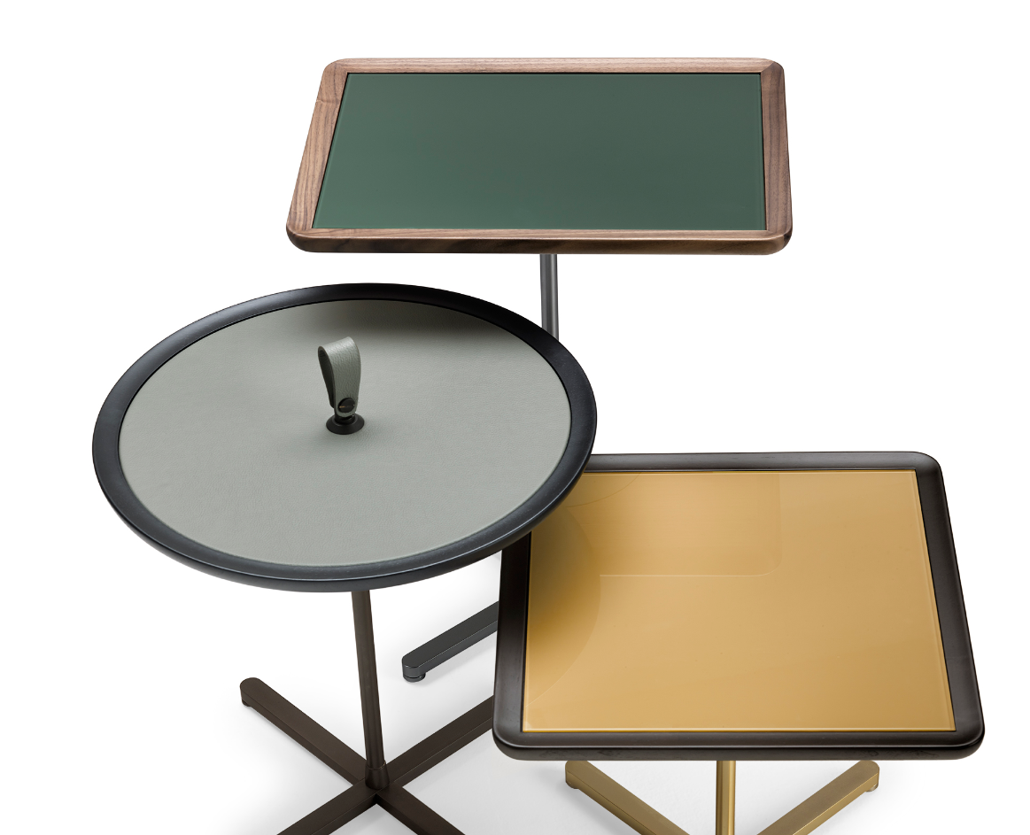 La struttura del tavolino Galimede Light, disponibile in diverse altezze e con finiture nero, oro, oro rosa, bronzato, sorregge un piano di forma quadrata, rettangolare o rotonda in legno, legno e vetro o legno con fondo in pelle per accogliere oggetti ed elementi diversi. Nella versione con piano in pelle è possibile aggiungere al centro una maniglia che permette al tavolino di essere spostato con facilità, adeguandosi a diversi contesti e necessità: nasce così Galimede Light con maniglia.