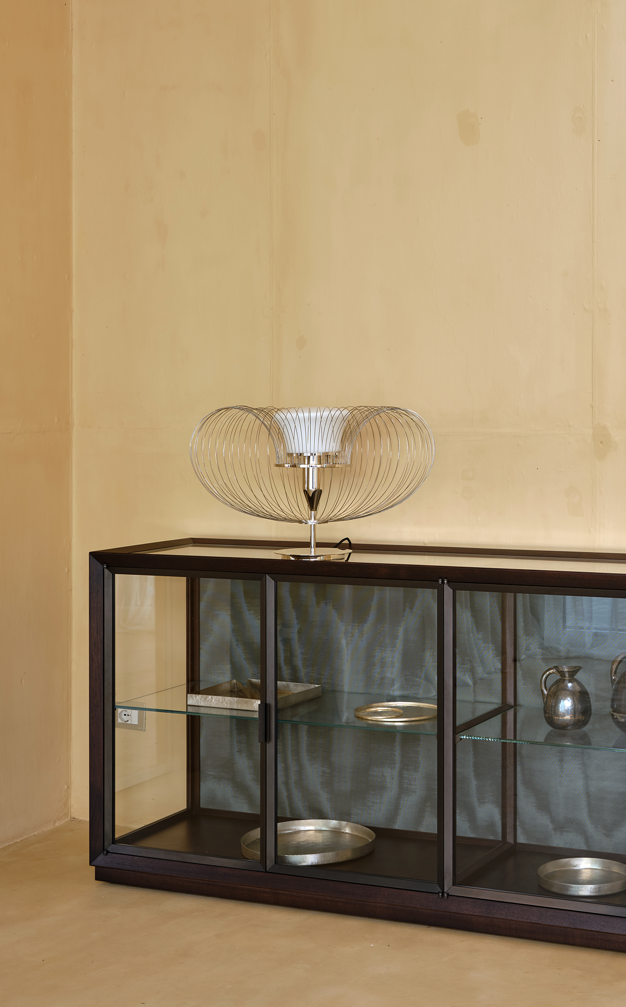 Steel Flower è una lampada da tavolo e terra in nichel lucido e acciaio. Essenziale e concettuale, ricrea la forma di un elemento naturale, il fiore, attraverso l’utilizzo di materiali industriali. Il paralume è in vetro bianco sabbiato e simula la parte centrale della pianta mentre intorno 64 fili in metallo sono ripiegati su sè stessi come a formare la corolla di petali.