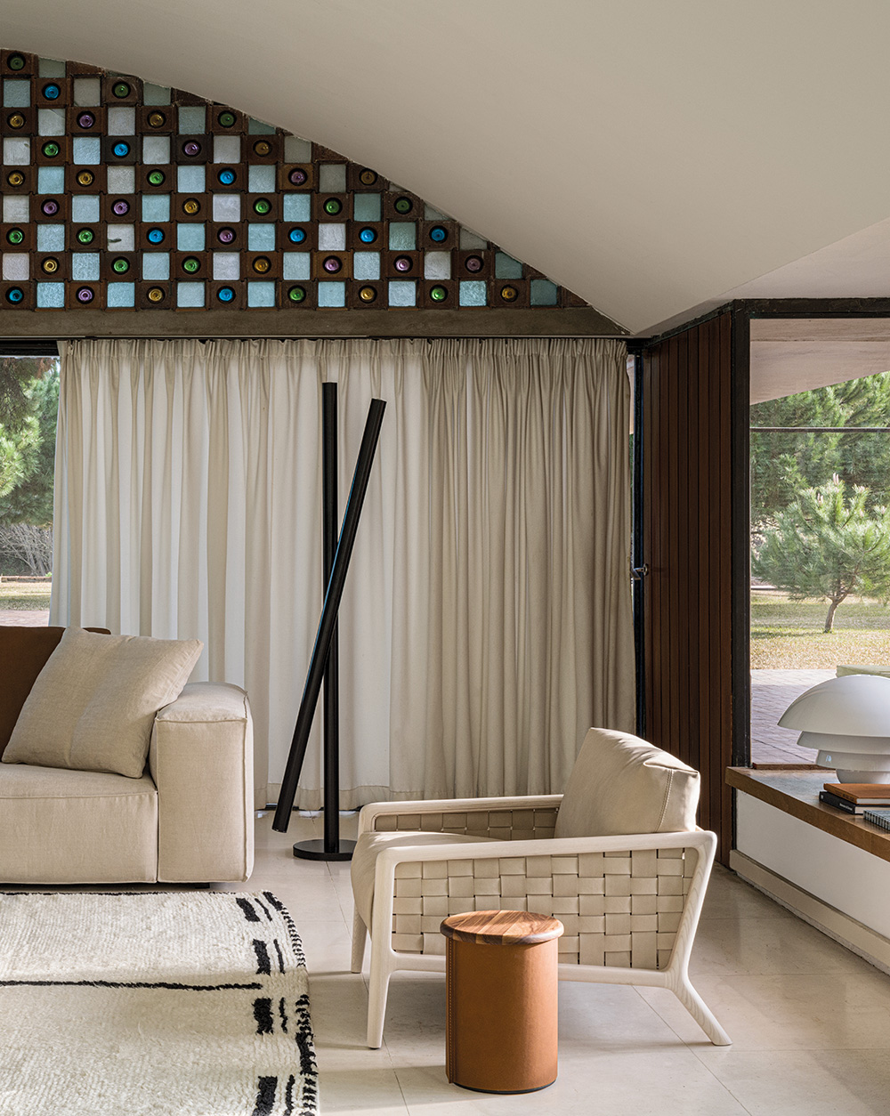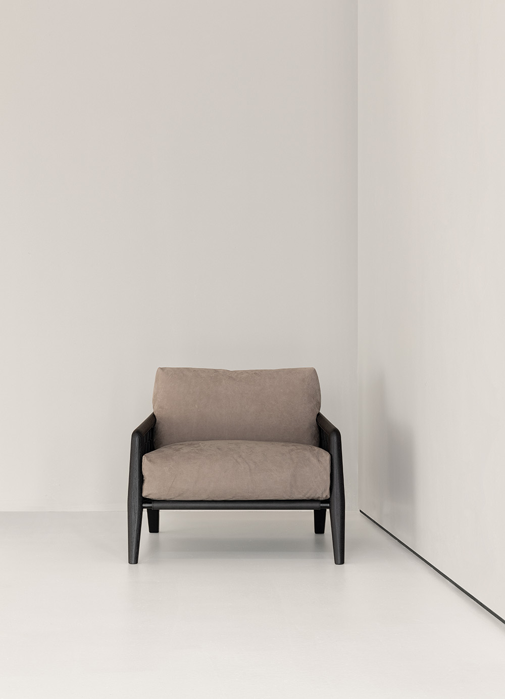MOTIFS ENDLESSLY REPEATING THEMSELVES, WEAVES WITH NO FORESEEABLE CLOSURE. IOLE HOLDS IDEAS, AS THE HAND CARESSES EACH CARVING ON THE LEATHER, LIKE RIPPLES ON WATER. MOTIVI CHE SI RIPETONO ALL’INFINITO, INTRECCI DI CUI NON SI CONOSCE L’ESITO. IOLE OSPITA I PENSIERI, MENTRE LA MANO SCORRE TRA GLI INTAGLI DI UNA SUPERFICIE DI PELLE, INCRESPATA COME LA SUPERFICIE DELL’ACQUA.