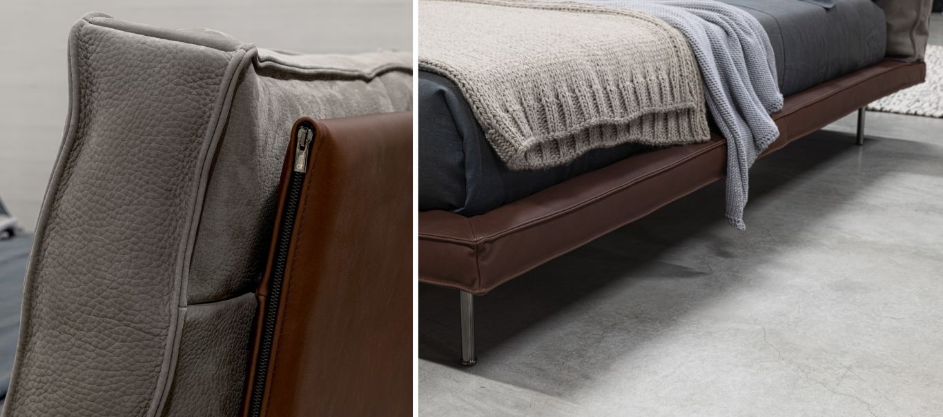 la cucitura che corre lungo tutti i cuscini sottolinea la purezza delle linee. la testata del letto divine ripropone la ricercata solidità della scocca rivestita in pelle che caratterizza tutta la collezione. un gioiello unico nella versione tutta in pelle, una composizione preziosa nella scelta di mixare pelle e tessuto. un riposo attento agli sguardi di chi è capace di ammirare e scovare lo stile anche nei più piccoli dettagli sartoriali.